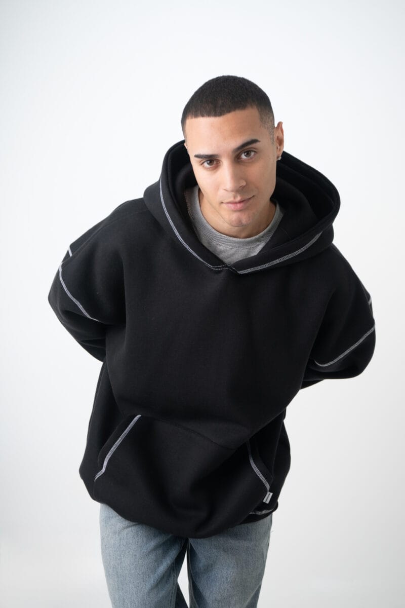 Buzo Misti es un buzo super oversize con una caída bien relajada y detalles que lo hacen único. Confeccionado en friza de alto gramaje, tiene capucha doble sin costura, hecha en la misma tela, y una estampa en la espalda que suma identidad visual sin sobrecargar. Todas las uniones están pisadas con costura ornamental de bordador, en un color a tono con la estampa y a contratono de la base, generando un contraste visual sutil pero con mucha presencia.
