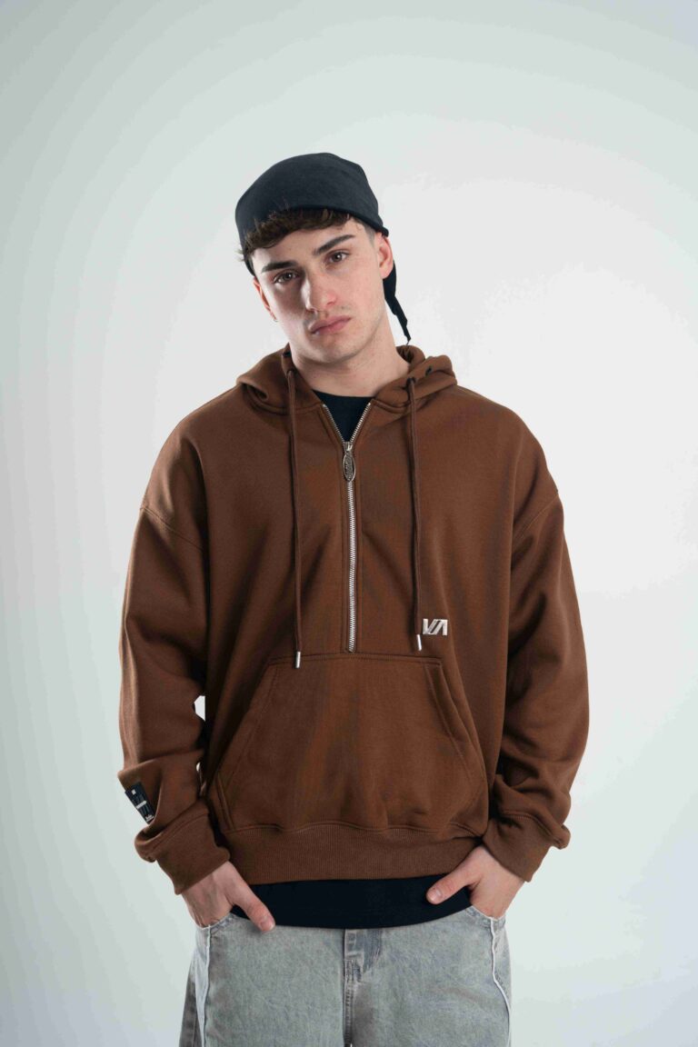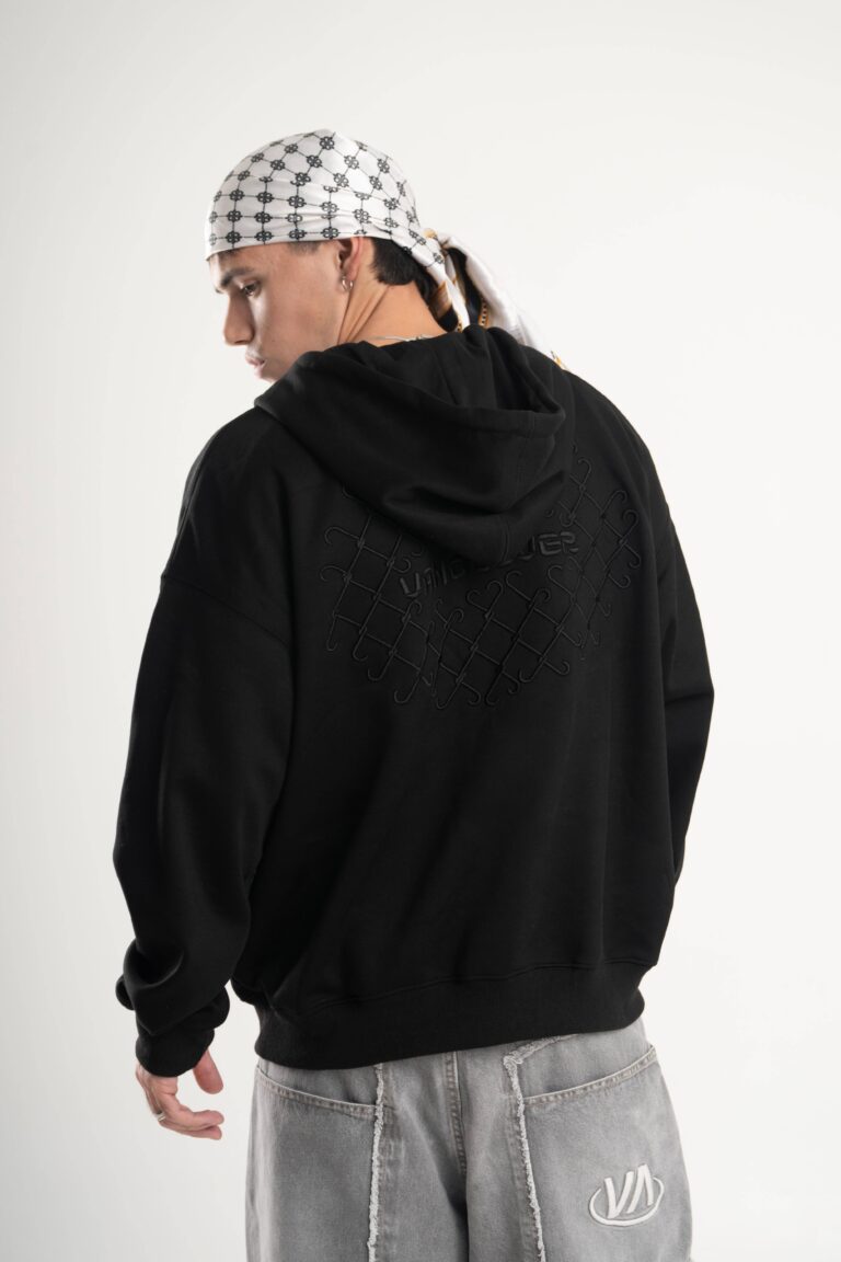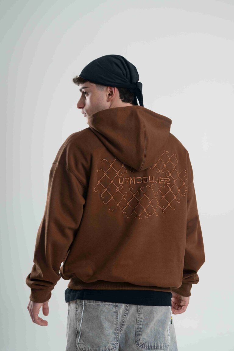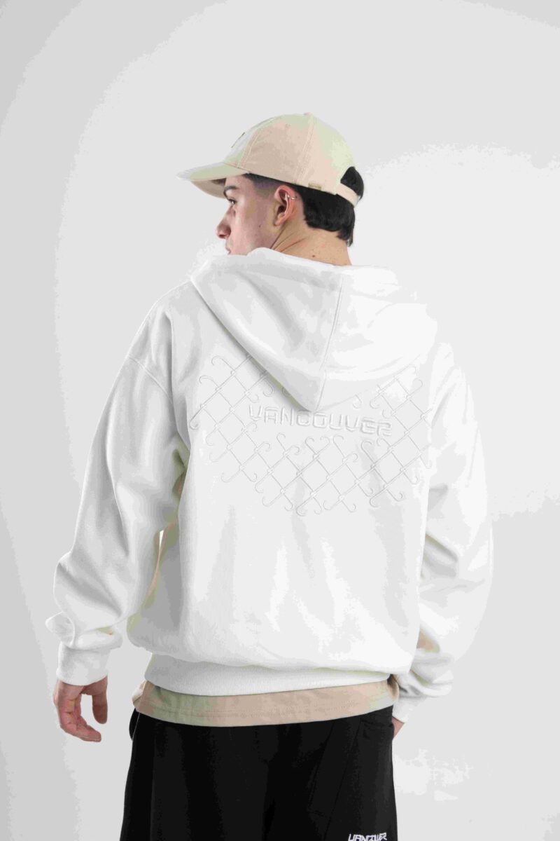 Buzo canguro de frisa importada de calce boxy.