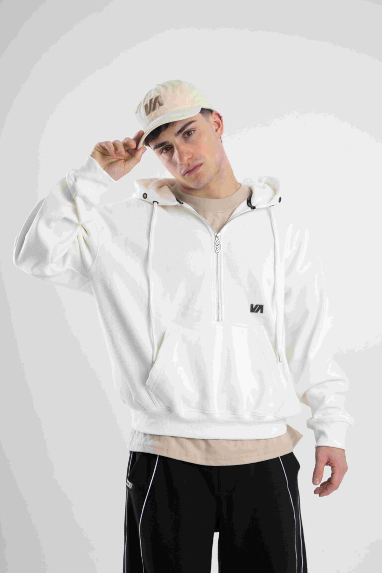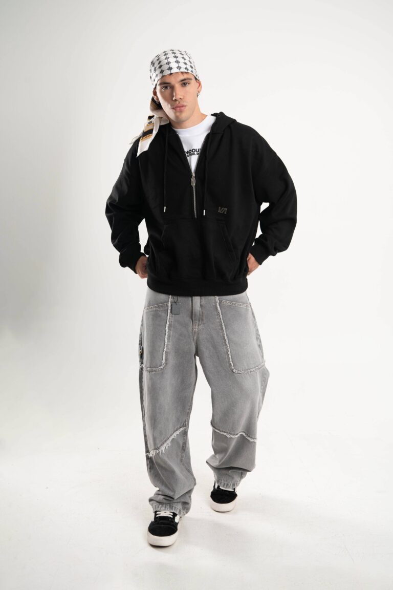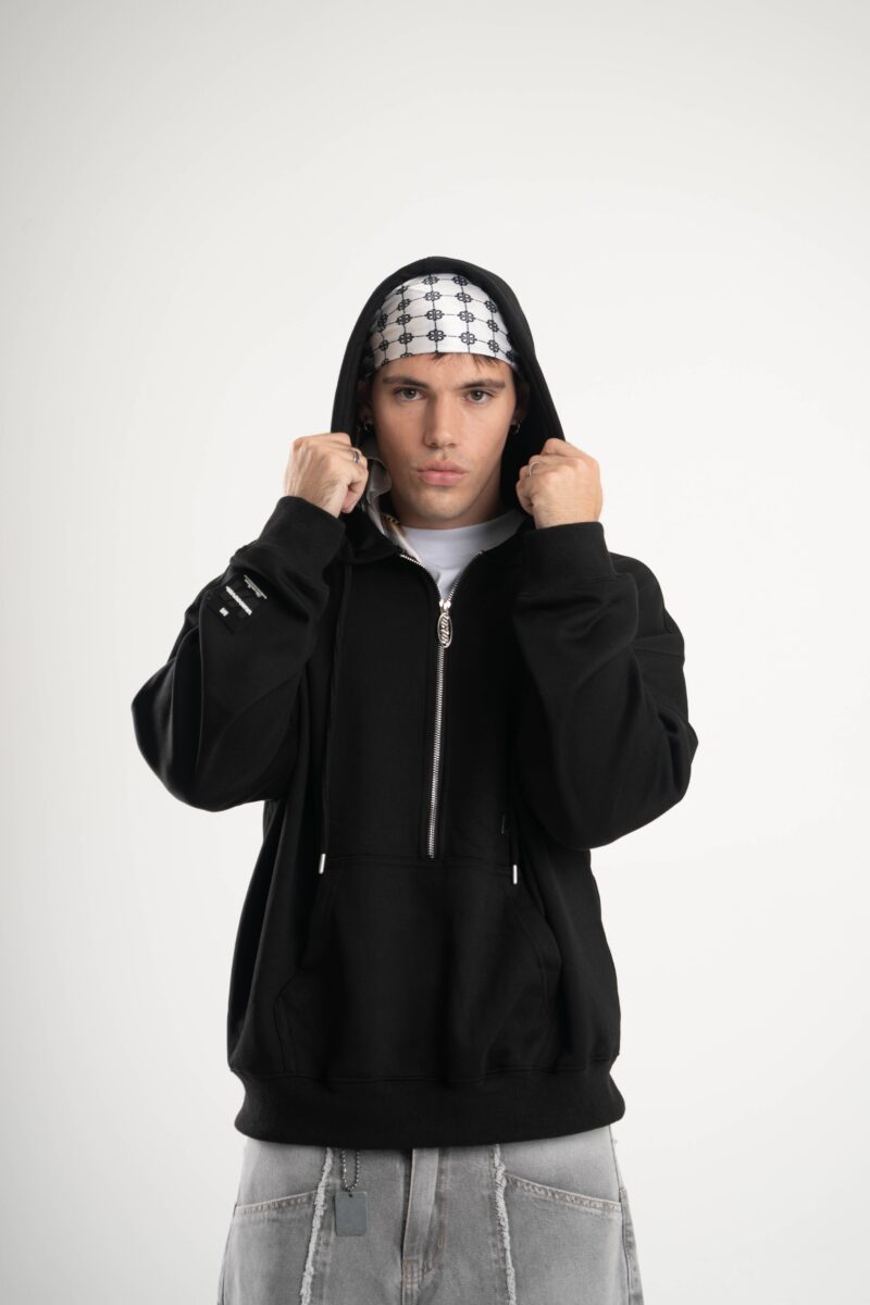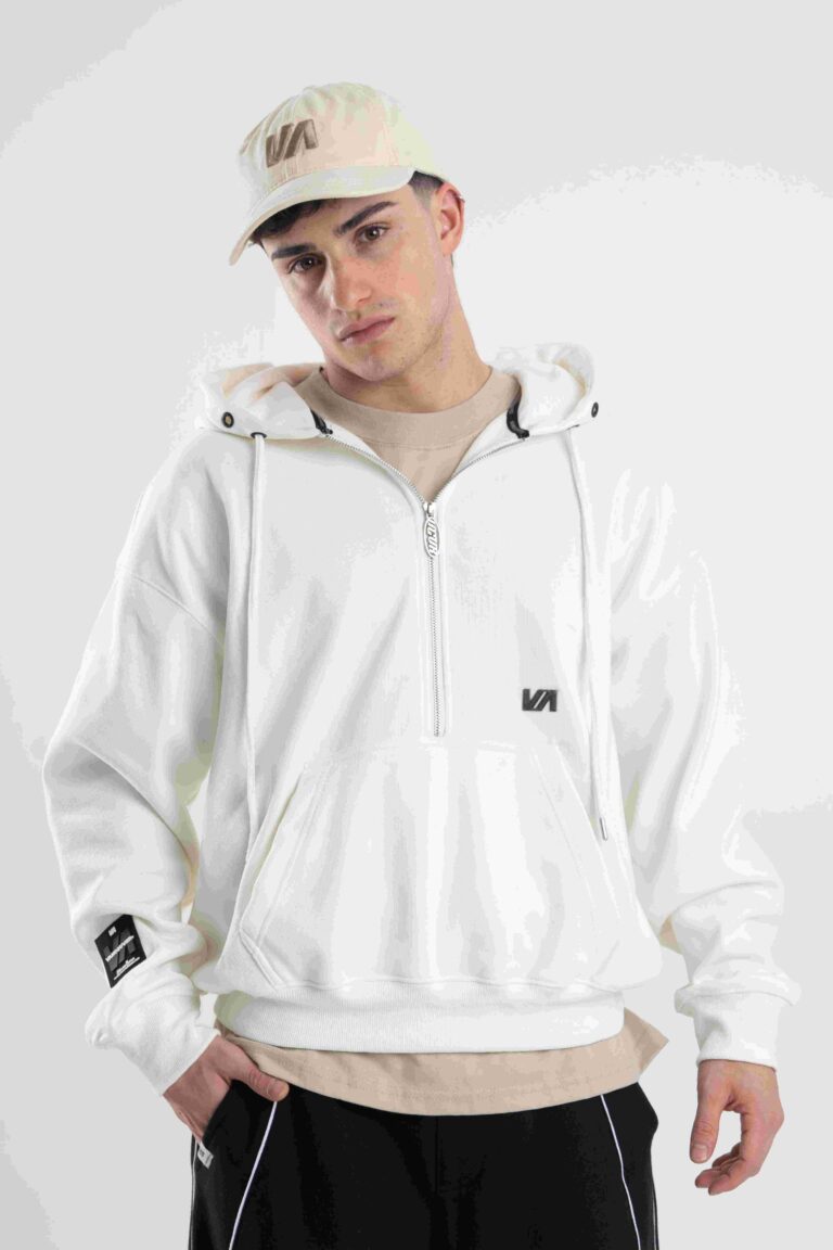 Buzo canguro de frisa importada de calce boxy.