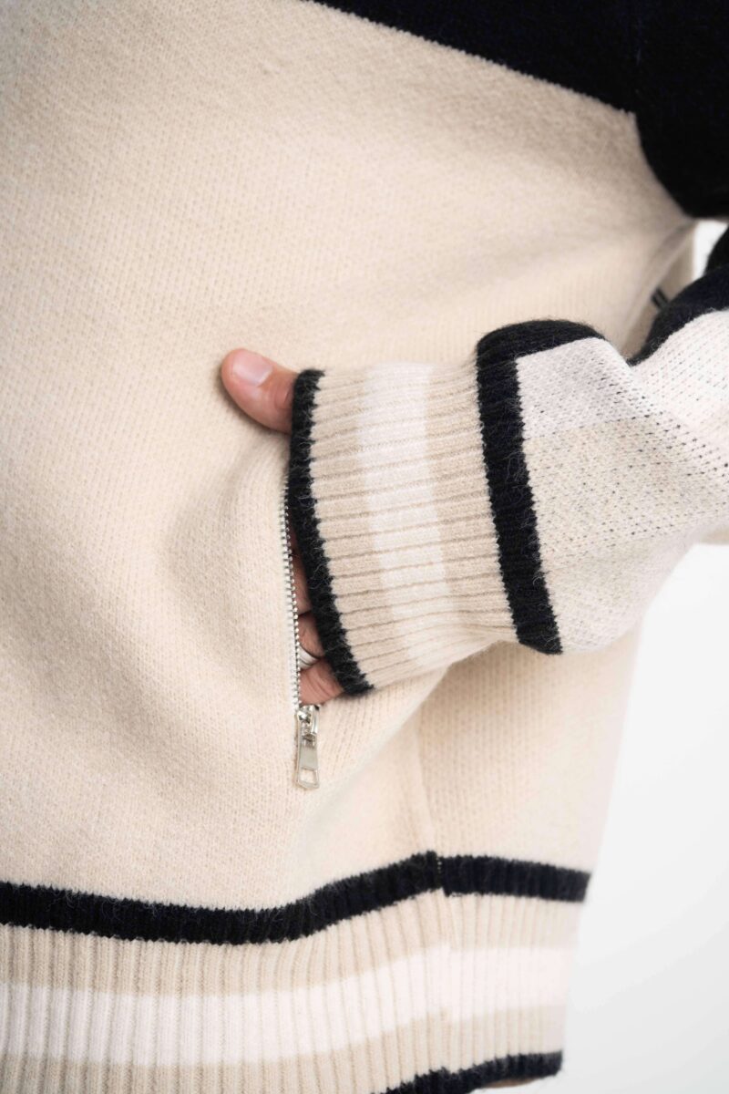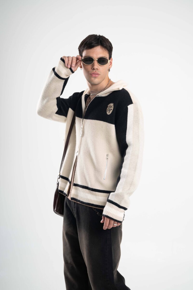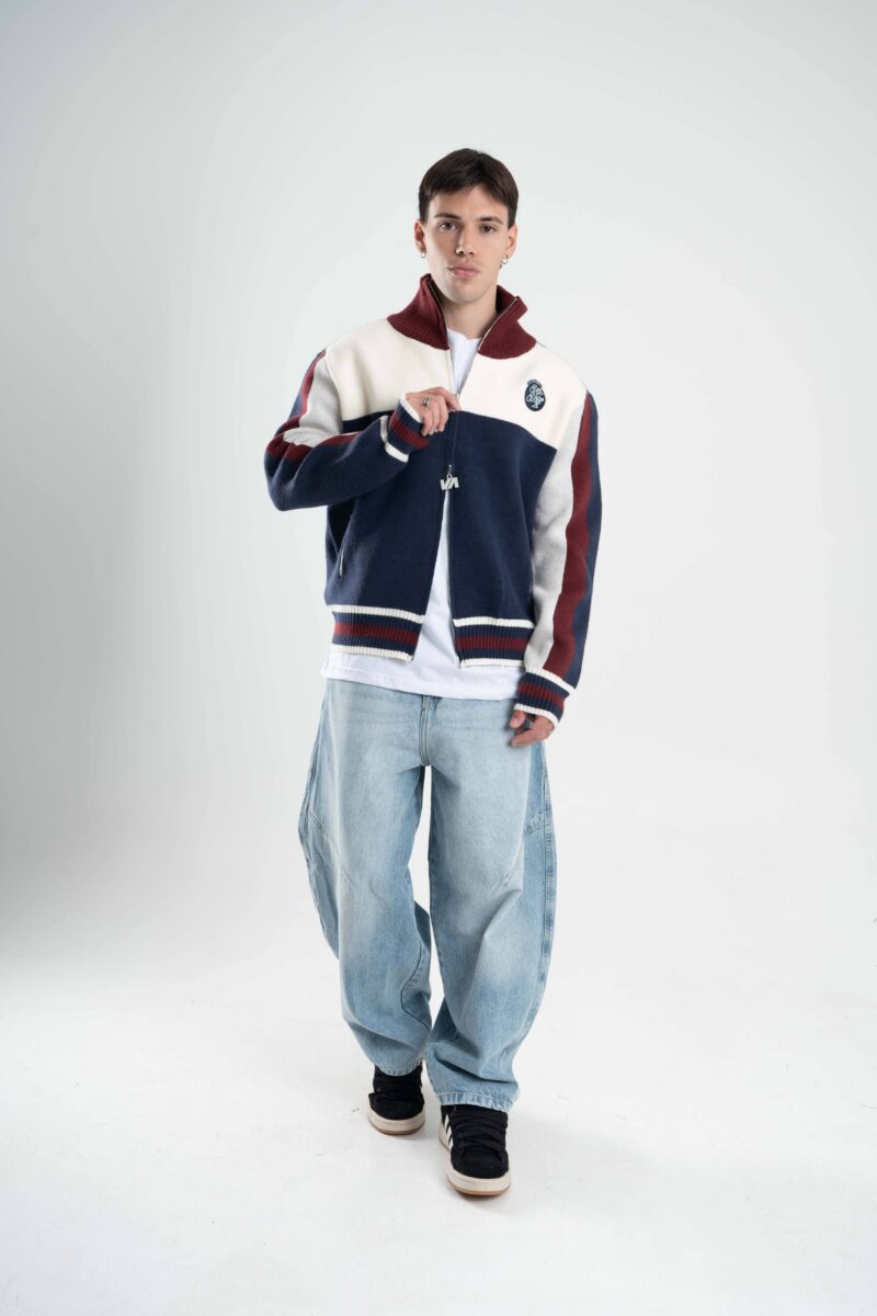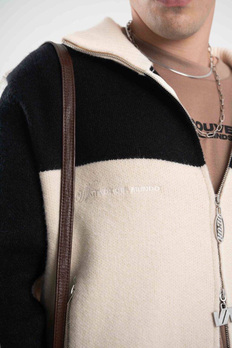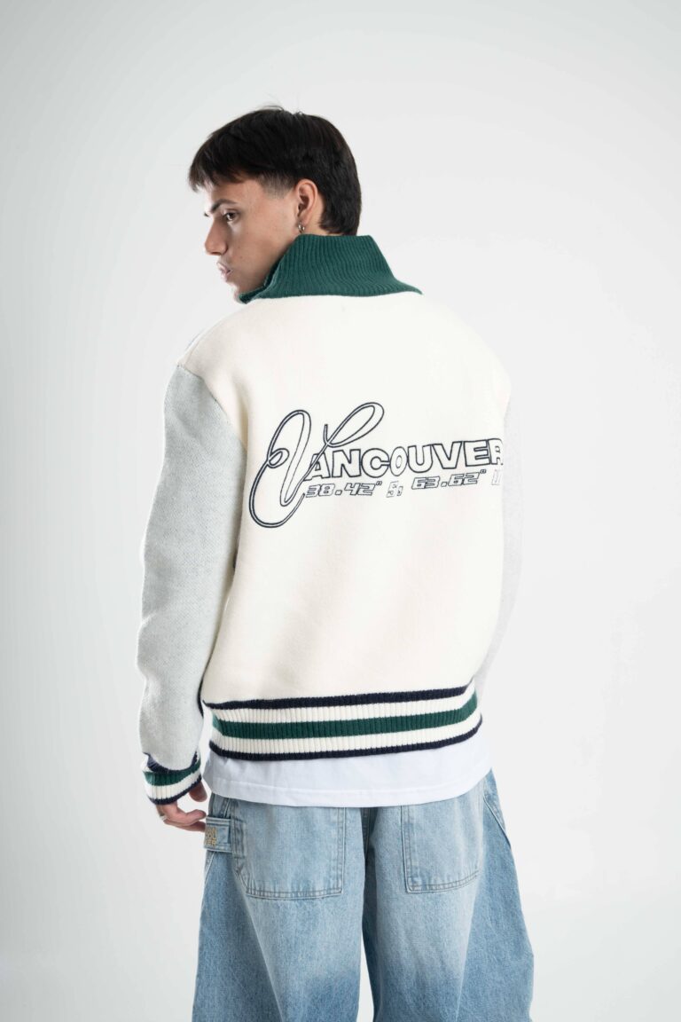 Fit oversize, cuello alto y combinación de colores que levanta cualquier look al instante. Detalles que suman identidad y cierre doble para usarla como quieras, de día o de noche.