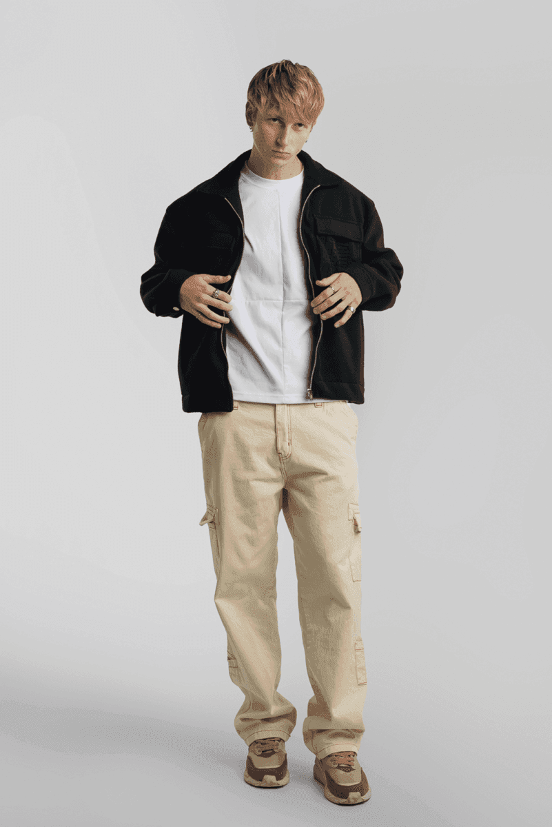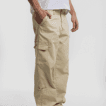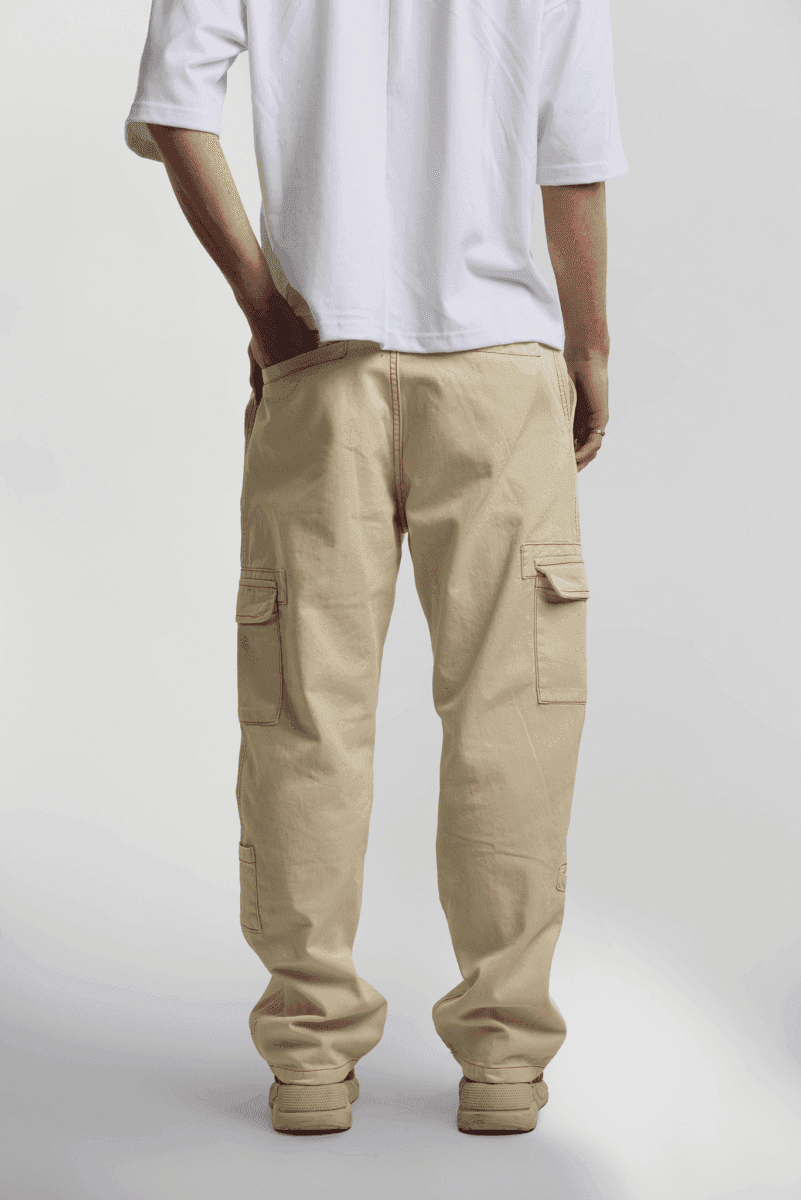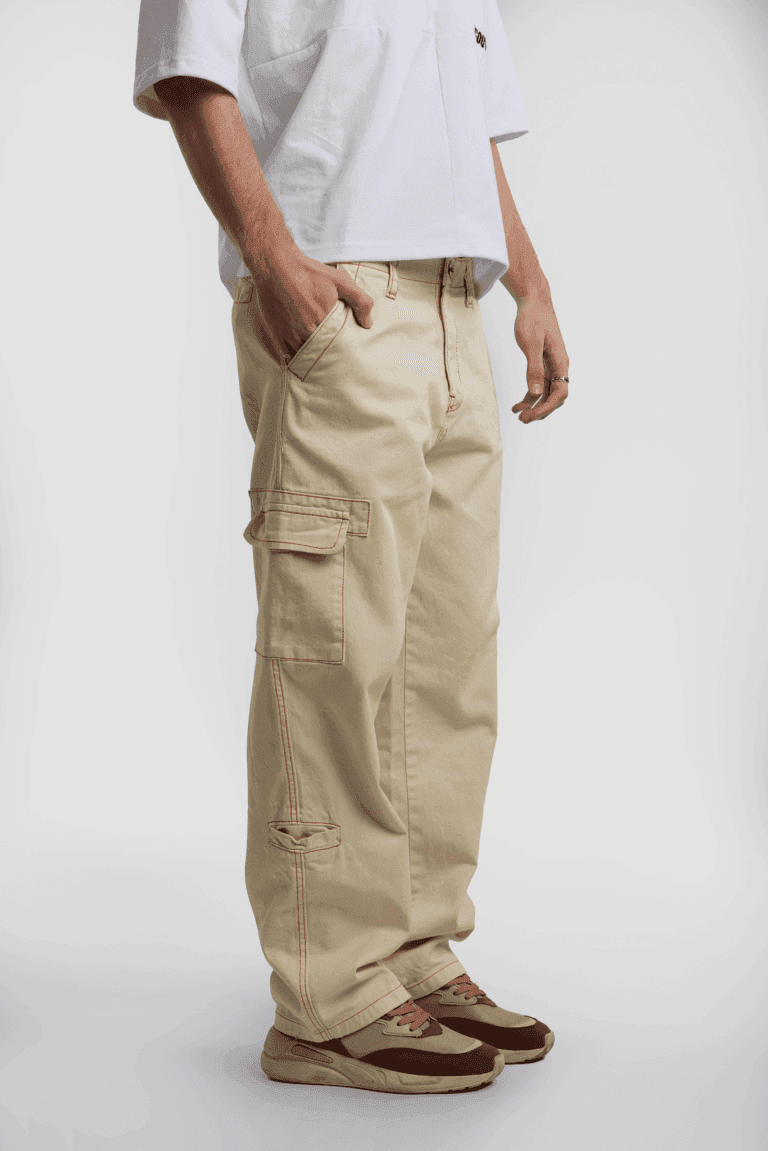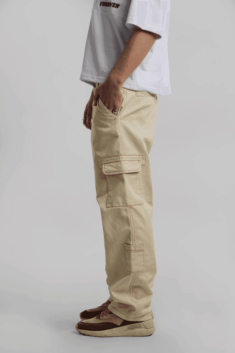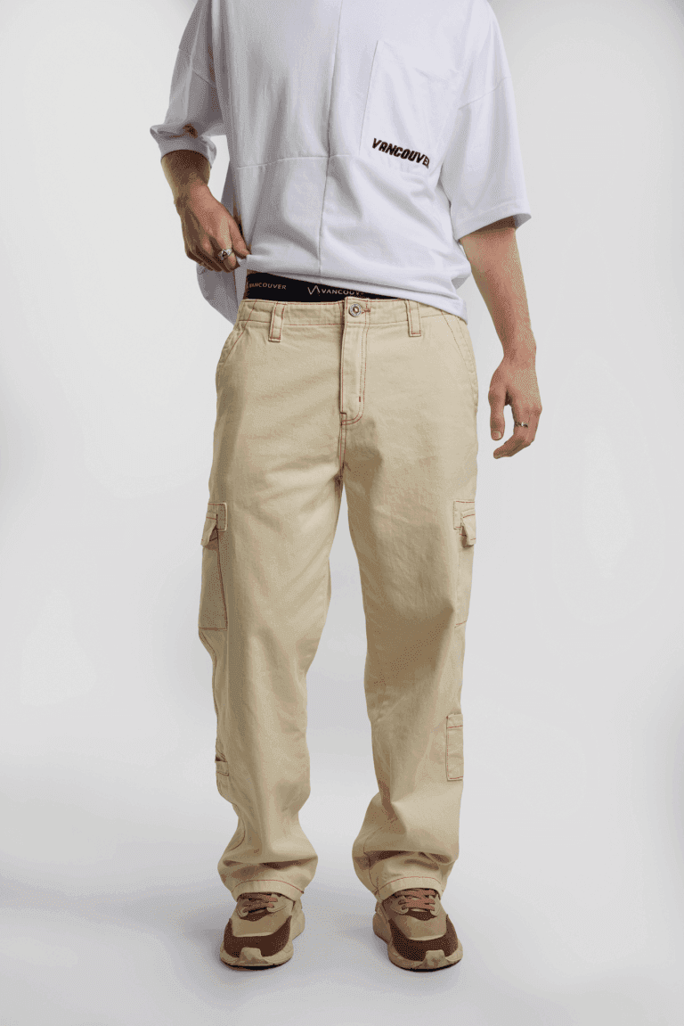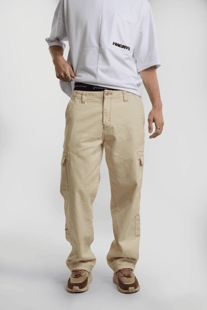 Pantalón cargo crudo con costuras combinadas. Esta prenda pertenece a la nueva colección de Vancouver Jeans.