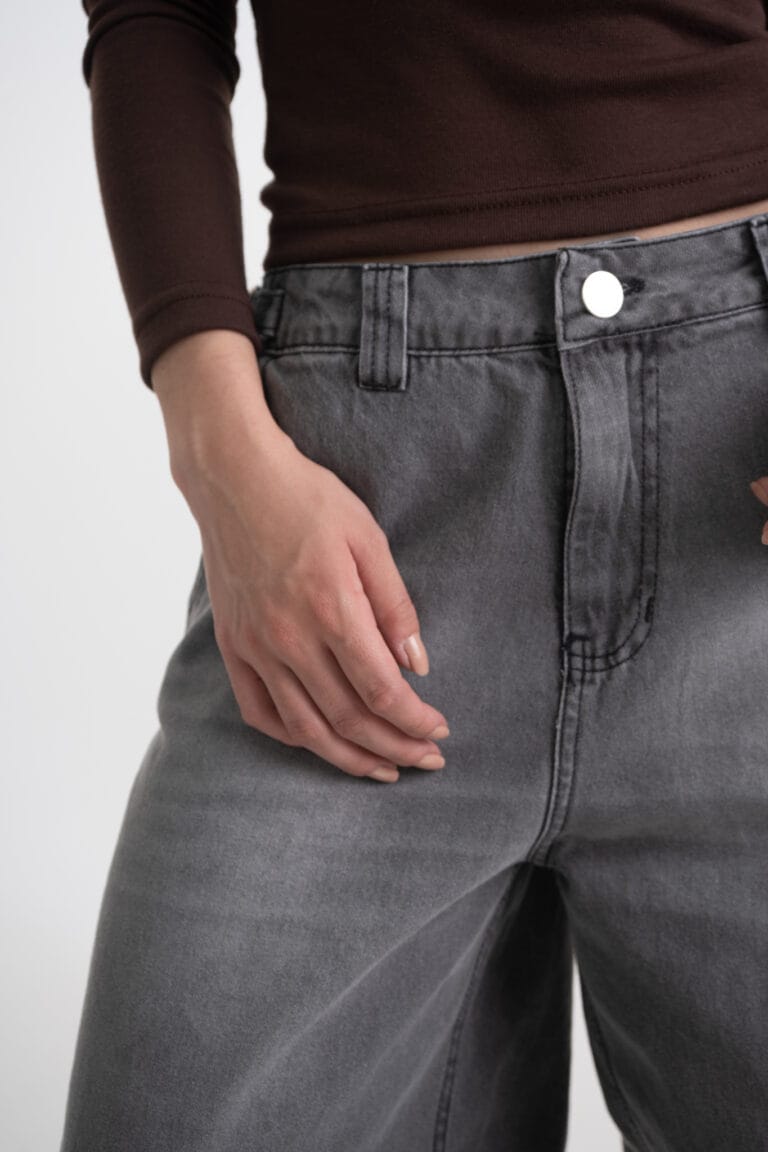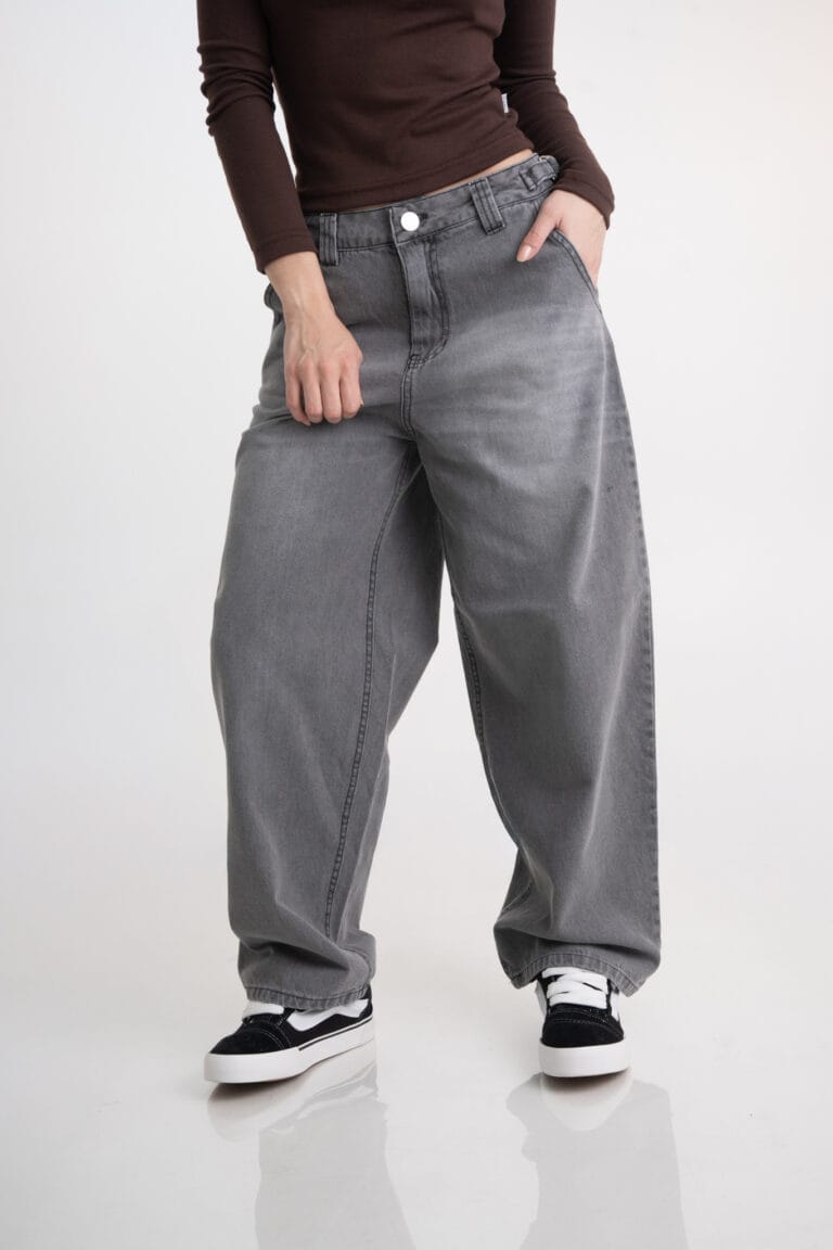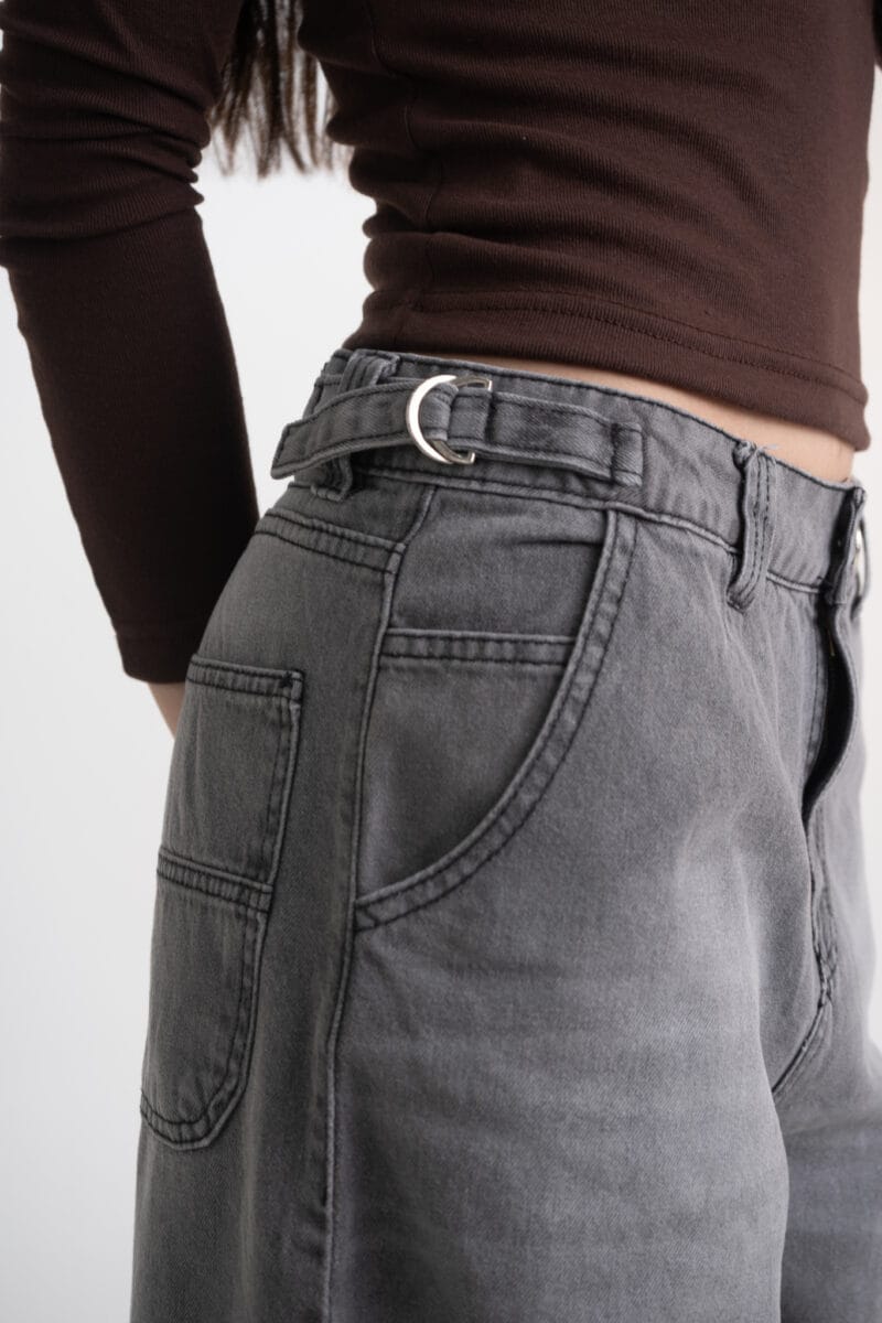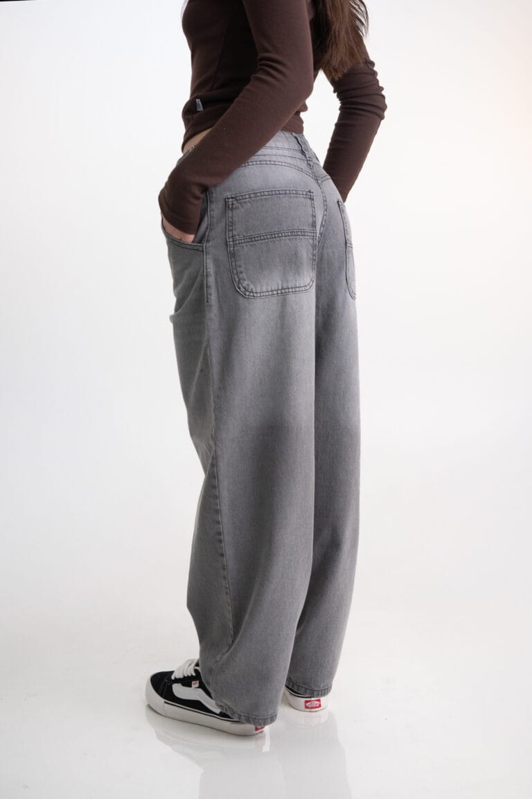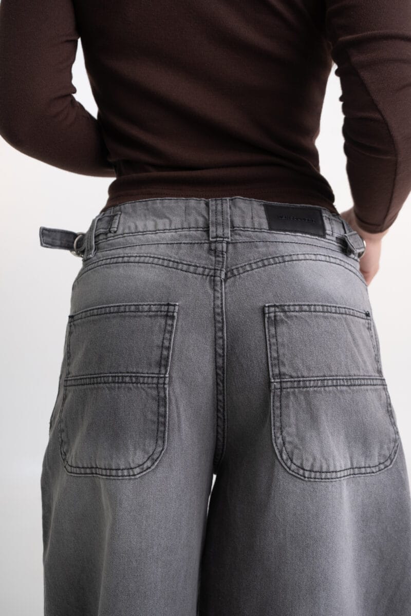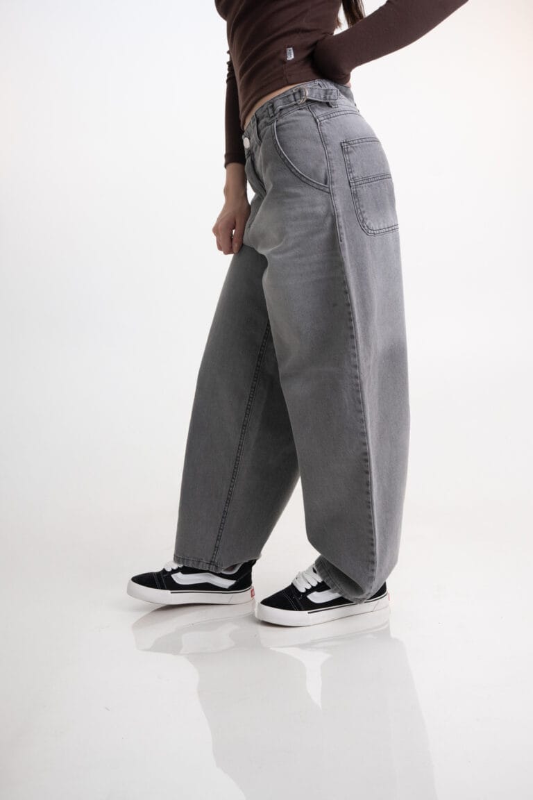 Con un fit amplio que cae con peso y un lavado gris que parece salido de otro planeta, el Brat Black tiene todo para llevarse el centro de la escena. El detalle de los bigotes láser y el ajuste en cintura con medialunas le dan ese toque técnico sin perder flow.