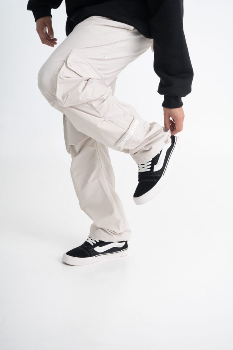 Este cargo te banca en todas. Corte recto con cintura elastizada, cordón con puntera y microfibra importada que es liviana pero aguanta. Viene con bolsillos cargo con tapa y broches, pinzas en el frente y ruedo ajustable para jugar con el fit. El abrojo con estampa Vancouver le da ese golpe final de identidad.
