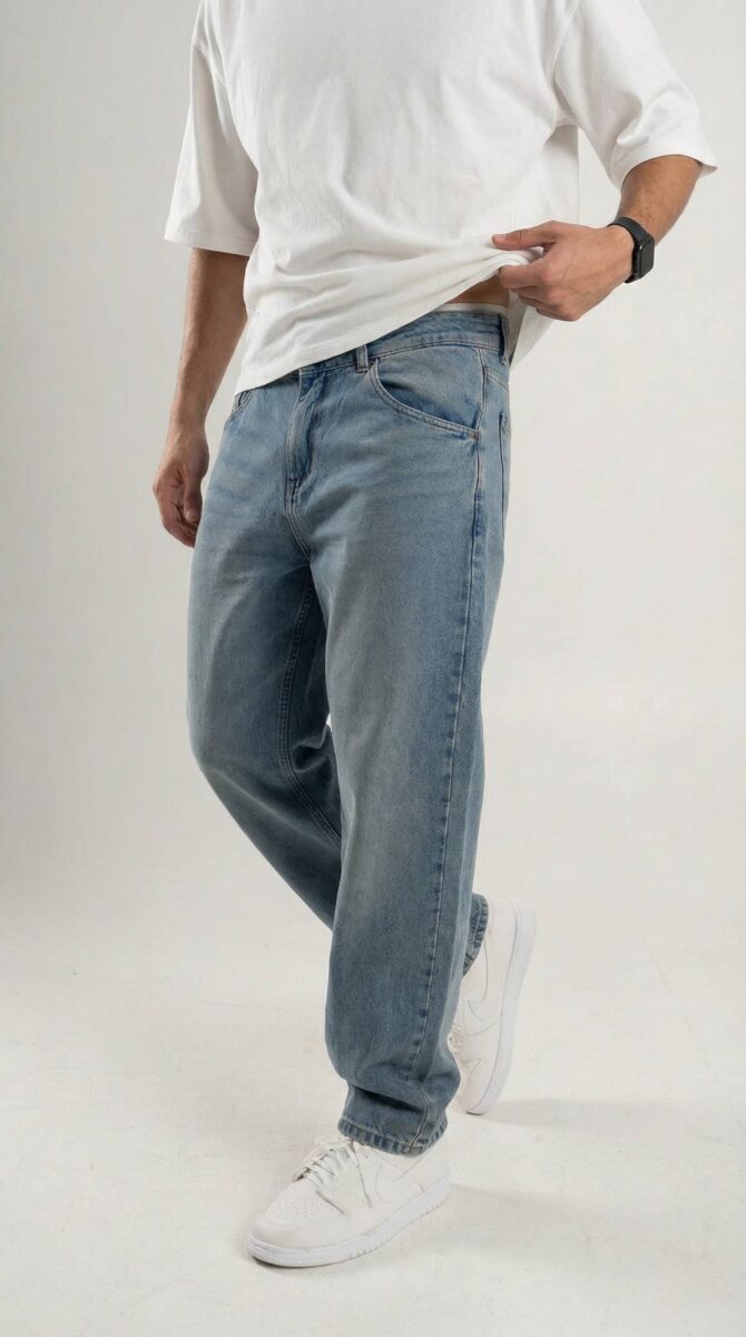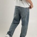 JEAN BAGGY COUVES Baggy de estructura firme con lavado protagonista. Jean de calce amplio con construcción clásica de cinco bolsillos y cierre metálico YKK. Presenta costuras en tono camel que contrastan con el lavado azul medio con matizado completo, localizado, bigotes y tags. Incorpora badana XL de cuero en tono camel y está confeccionado en denim pesado 100% algodón, logrando un look sólido y bien urbano.