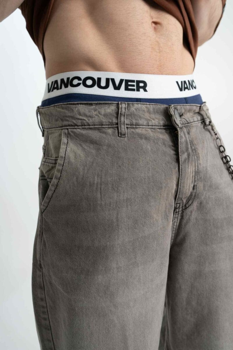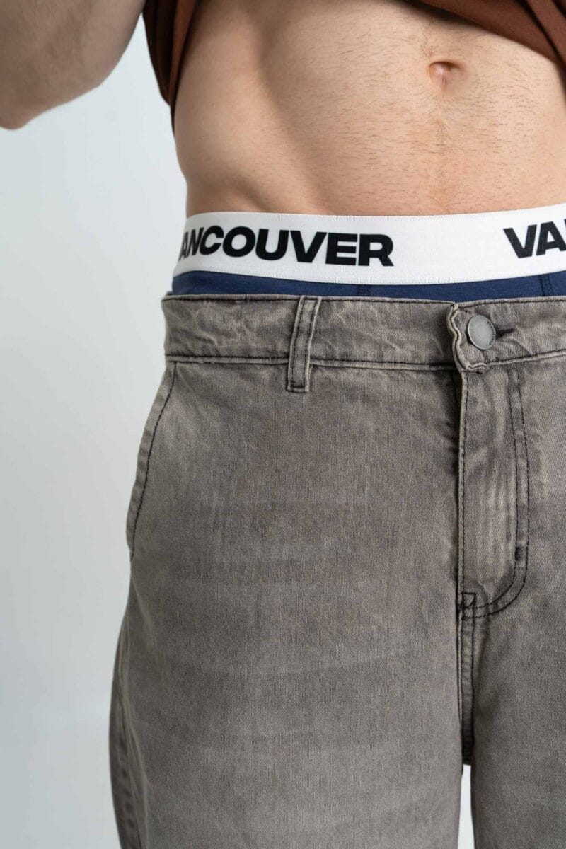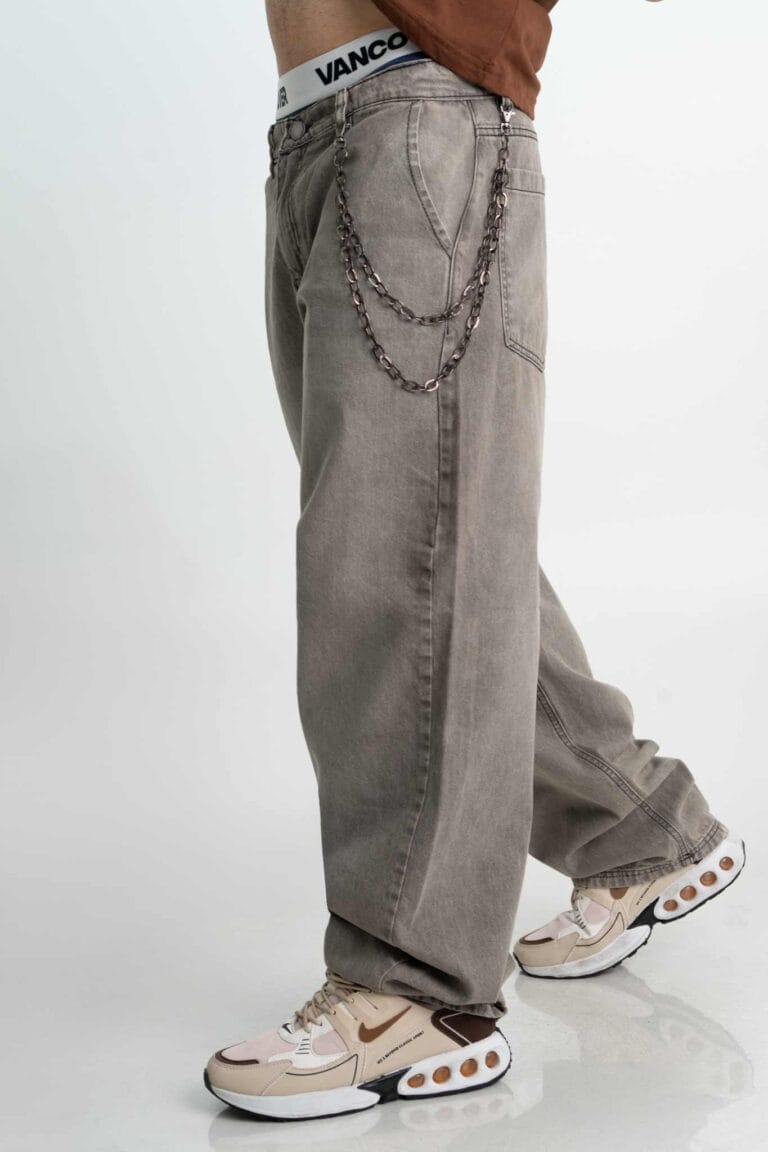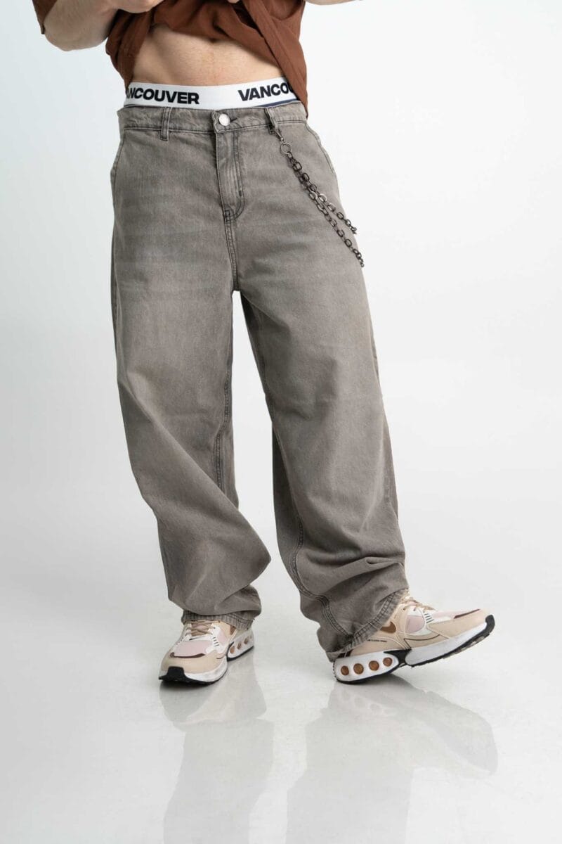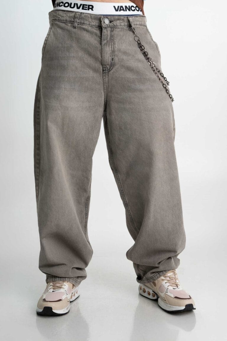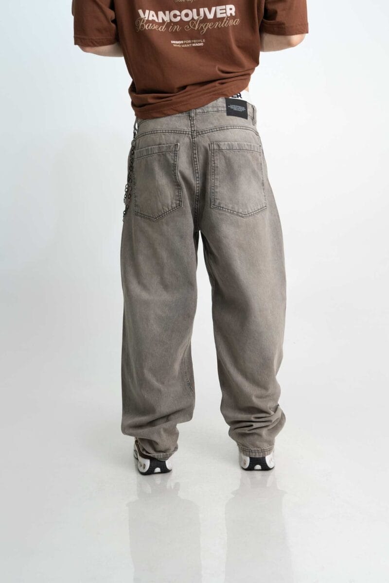 El Grou trae ese fit holgado que se siente libre y cómodo, con un lavado gris acid wash que le da un aire rebelde y urbano. Bolsillos grandes, costuras negras y detalles en black níquel que suben la apuesta.