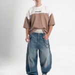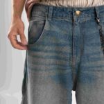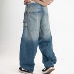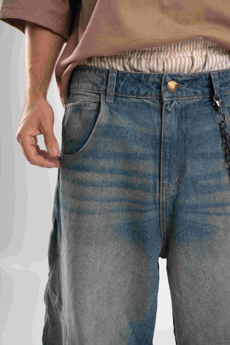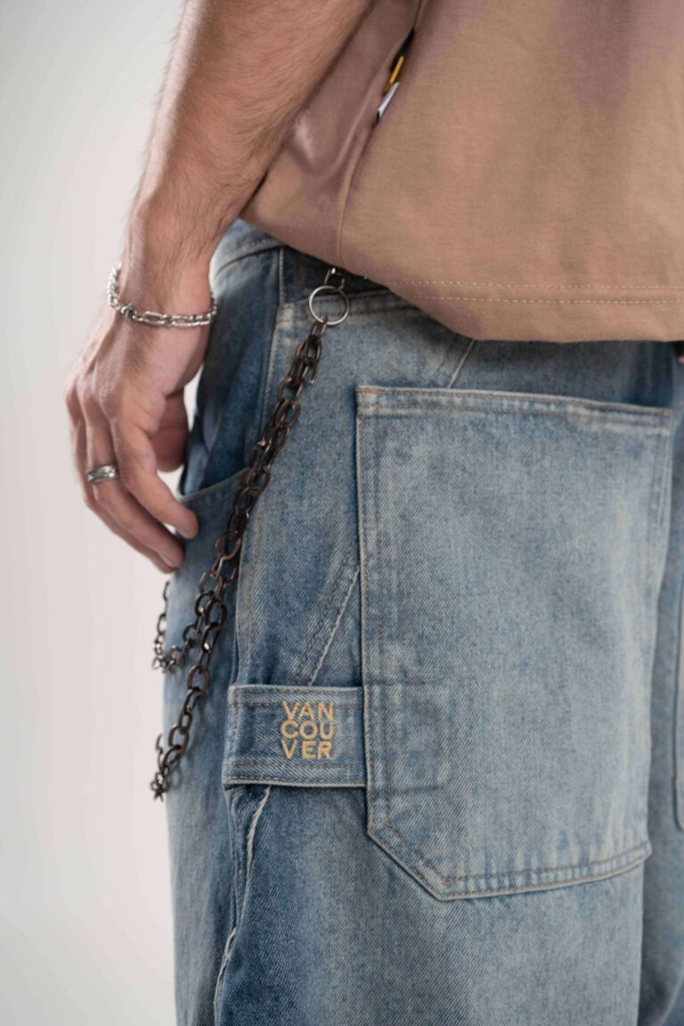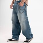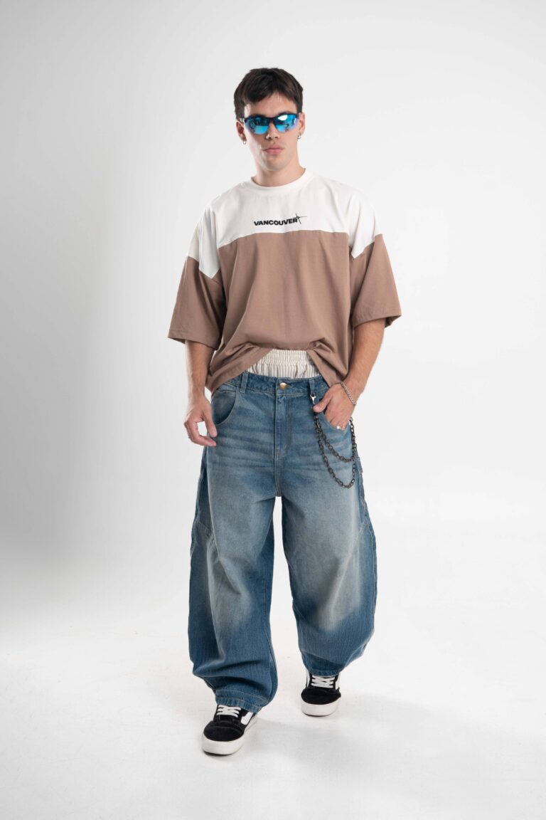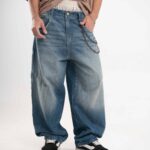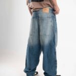 Jean de calce balloon confeccionado en denim rígido premium, con lavado azul medio acid wash que aporta profundidad y carácter.
