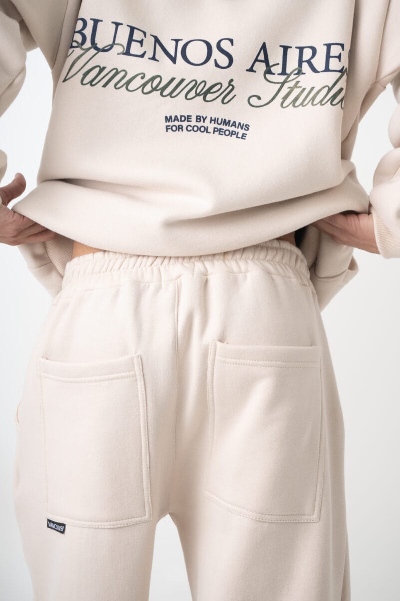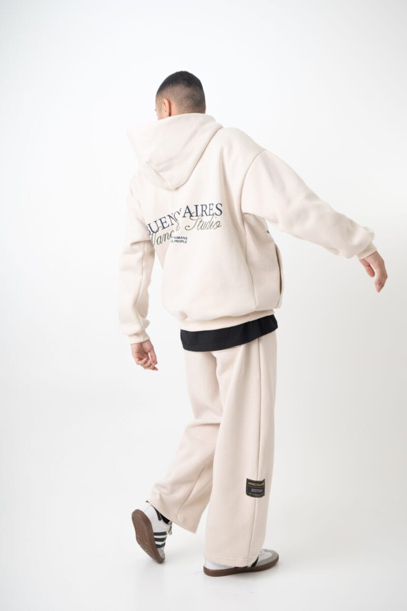 Este jogging rompe con lo clásico y se lanza al juego del oversized. El corte balloon lo hace ancho desde la cadera y mantiene la caída hasta el tobillo, generando una silueta fuerte pero cómoda. Con cintura elástica, sin cordón a la vista y bragueta cerrada, suma prolijidad sin perder flow.