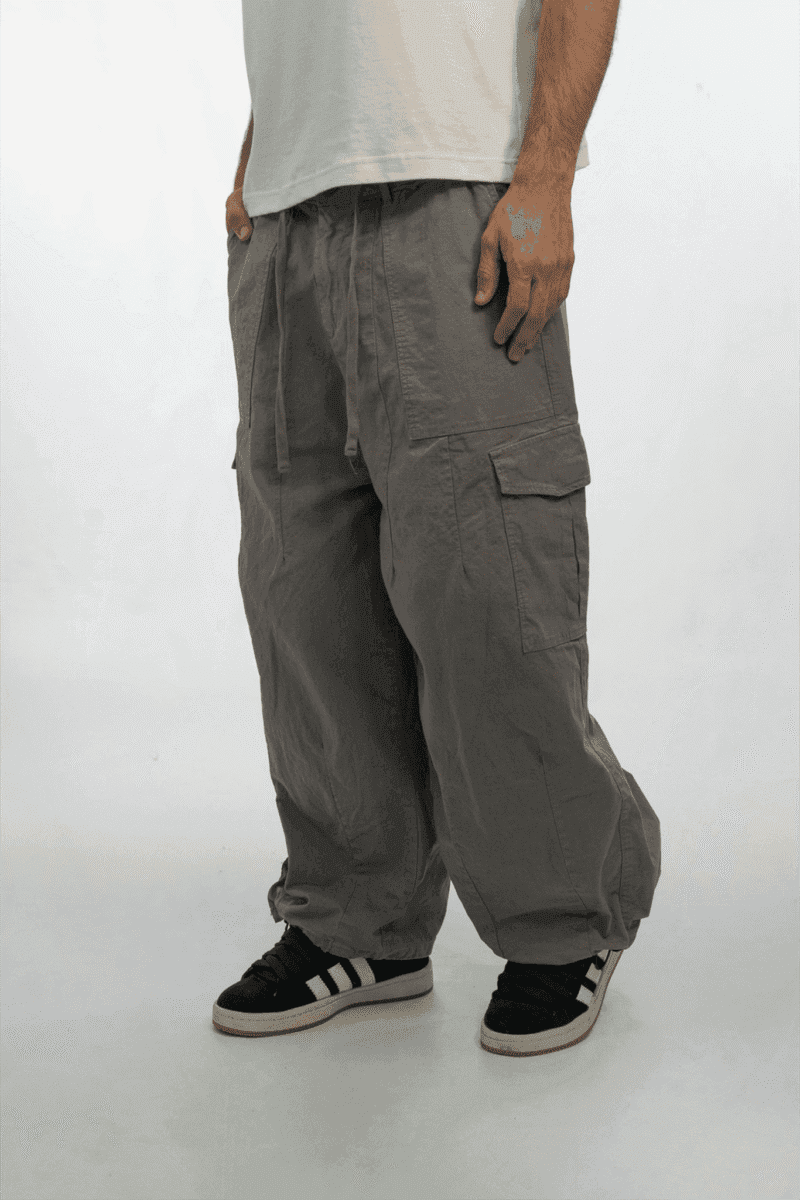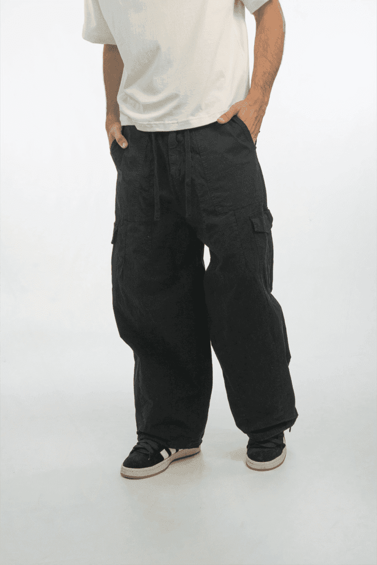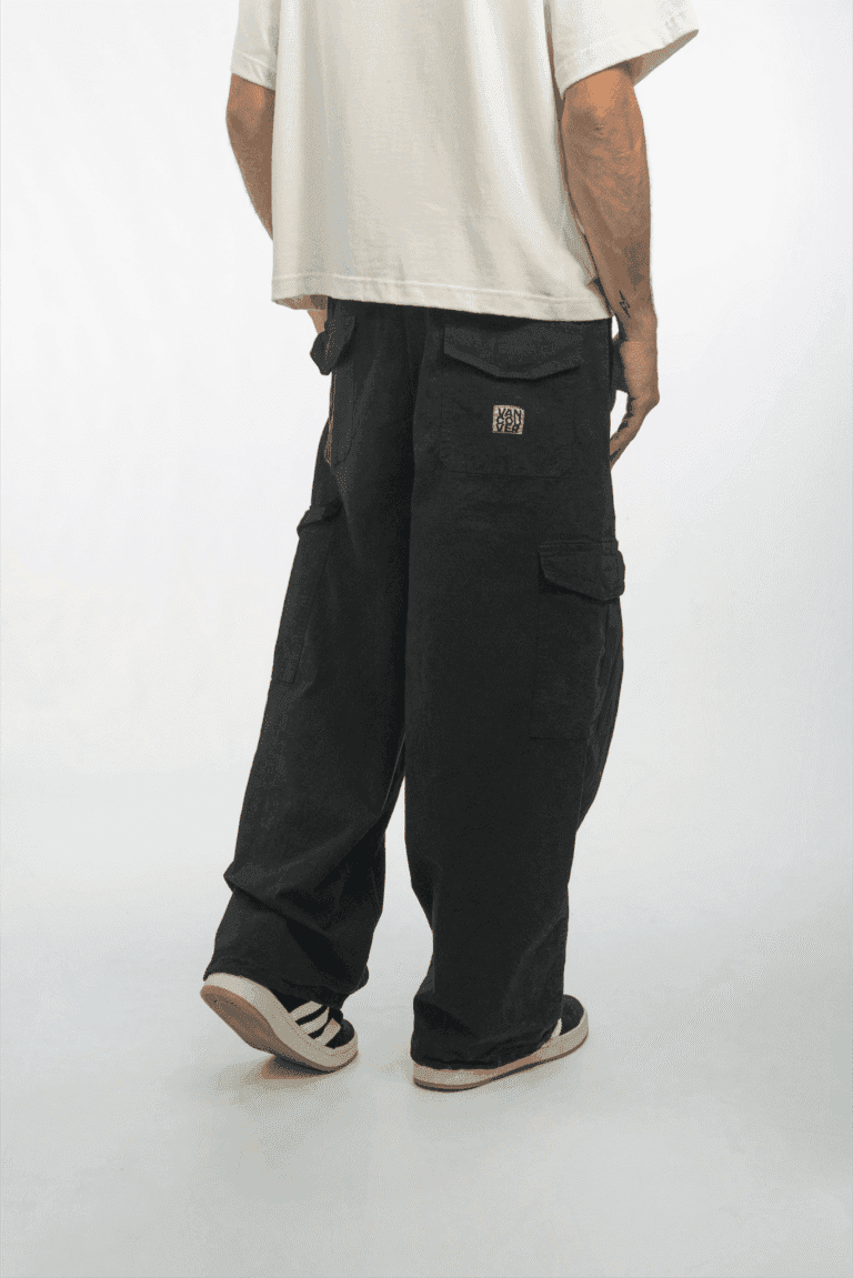 Este es un pantalón super baggy pensado para quienes buscan comodidad total sin dejar de lado la onda. Confeccionado en gabardina texturizada impermeable importada, combina estructura y flexibilidad. Sus múltiples bolsillos, ruedo regulable y detalles técnicos lo convierten en una pieza clave del streetwear.