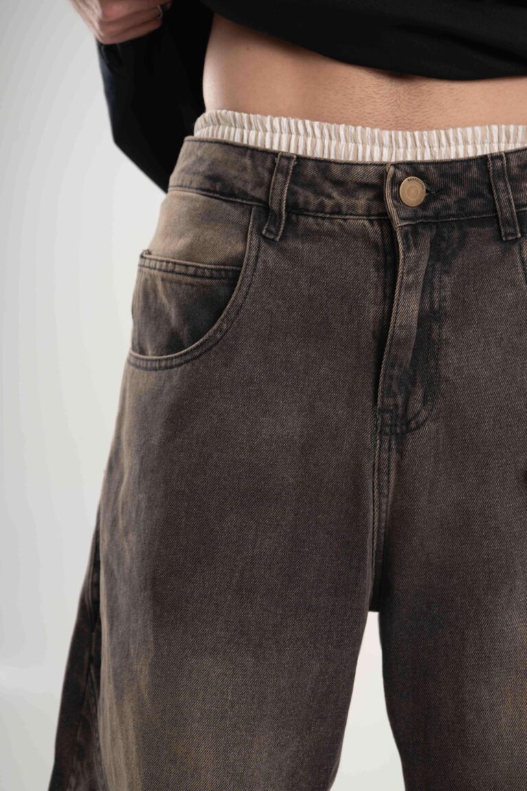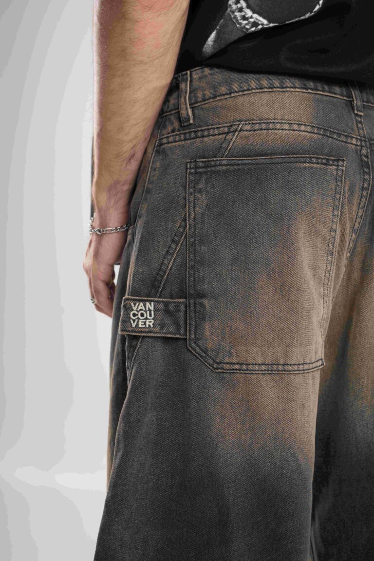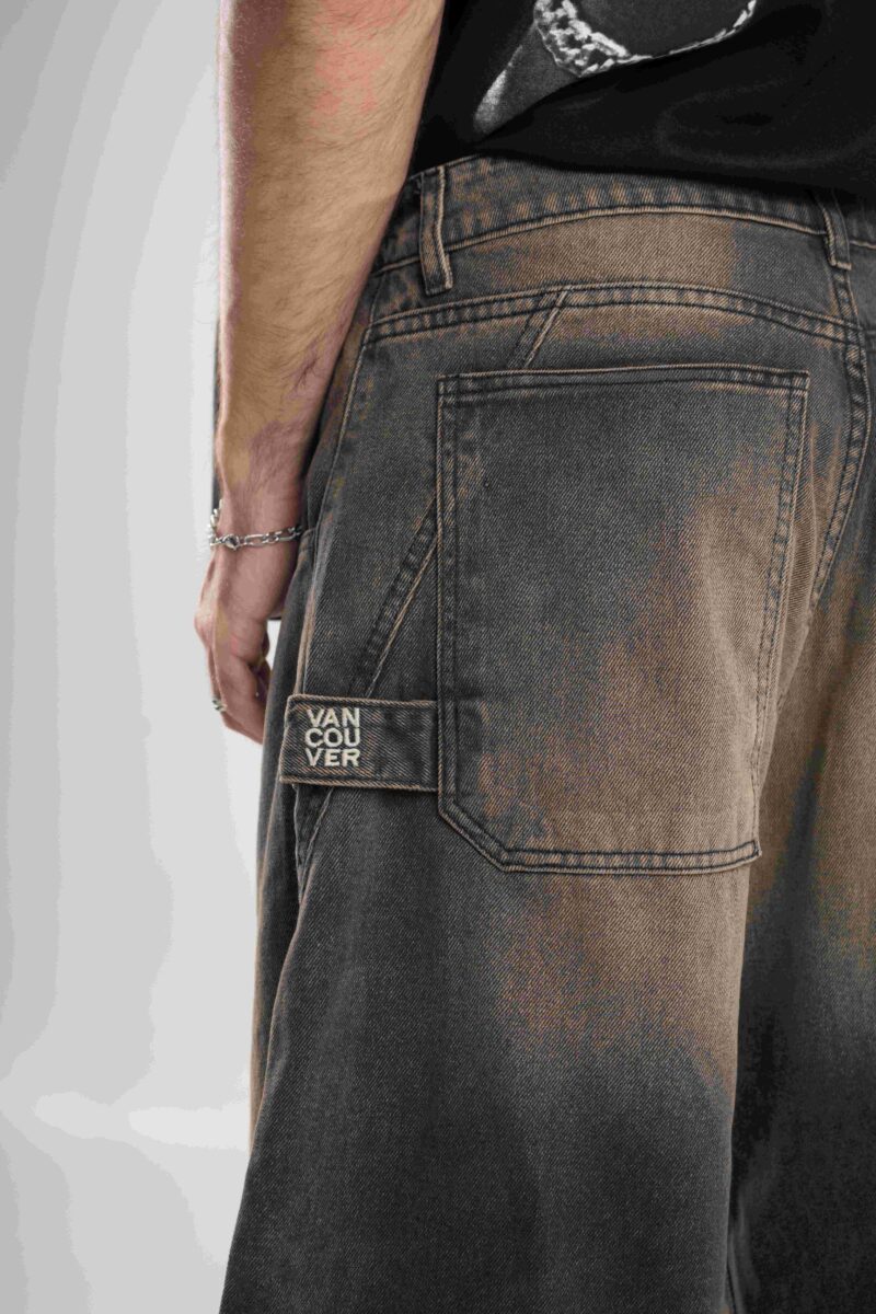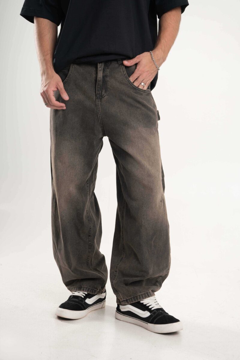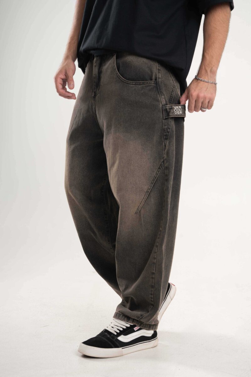 Jean de calce super baggy confeccionado en denim black premium 100% algodón, con lavado negro acid wash que aporta textura y profundidad.