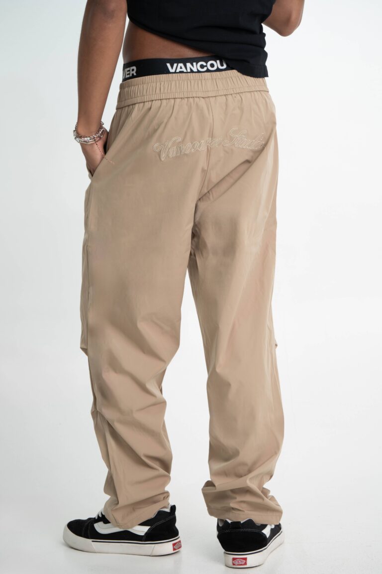 Confeccionado en tejido técnico liviano tipo parachute, este pantalón ofrece un calce relajado con cintura elástica y cordón regulable. La pretina interior con logo VANCOUVER aporta identidad deportiva, mientras que el bordado trasero Vancouver Studio le suma un detalle exclusivo. Ideal para un look urbano con impronta contemporánea y funcional.