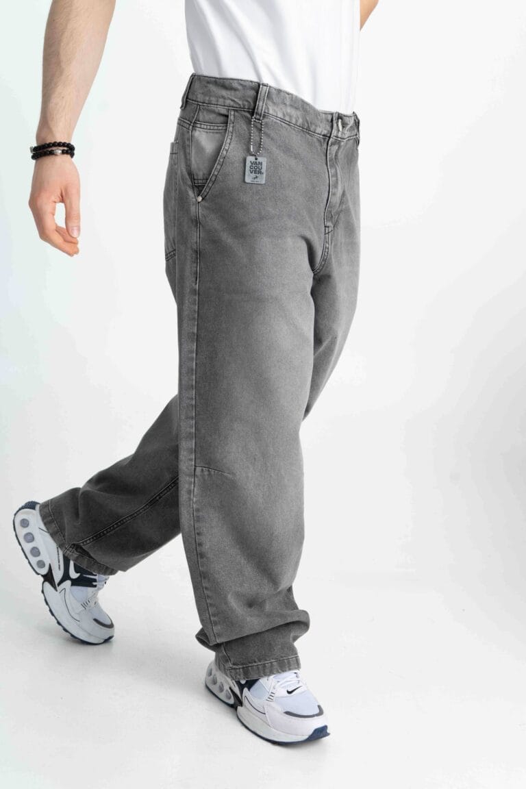 Un denim pensado para quienes buscan comodidad sin perder estilo. Calce baggy con cinco bolsillos, pinzas en el delantero y cierre metálico YKK. El lavado gris con efecto acid wash y bigotes láser le dan esa vibra urbana única, mientras que el detalle de cadena con chapita black níquel lo eleva a otro nivel.