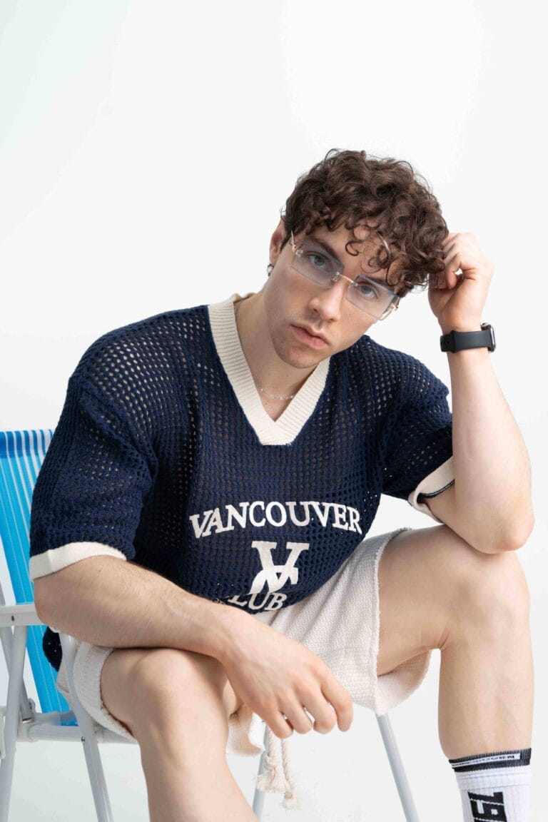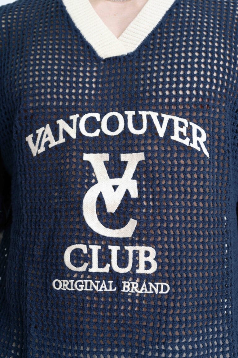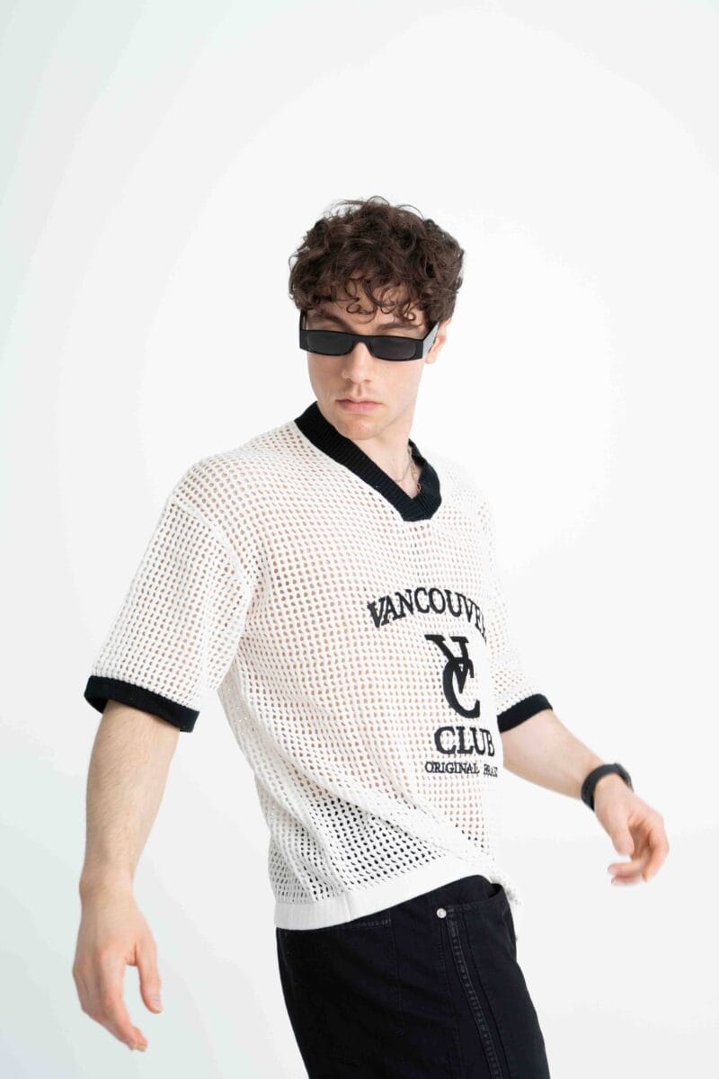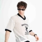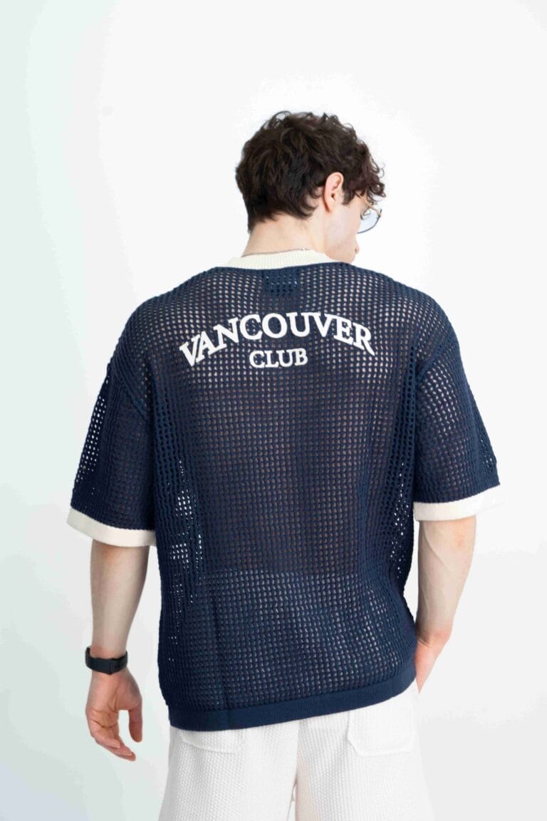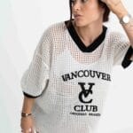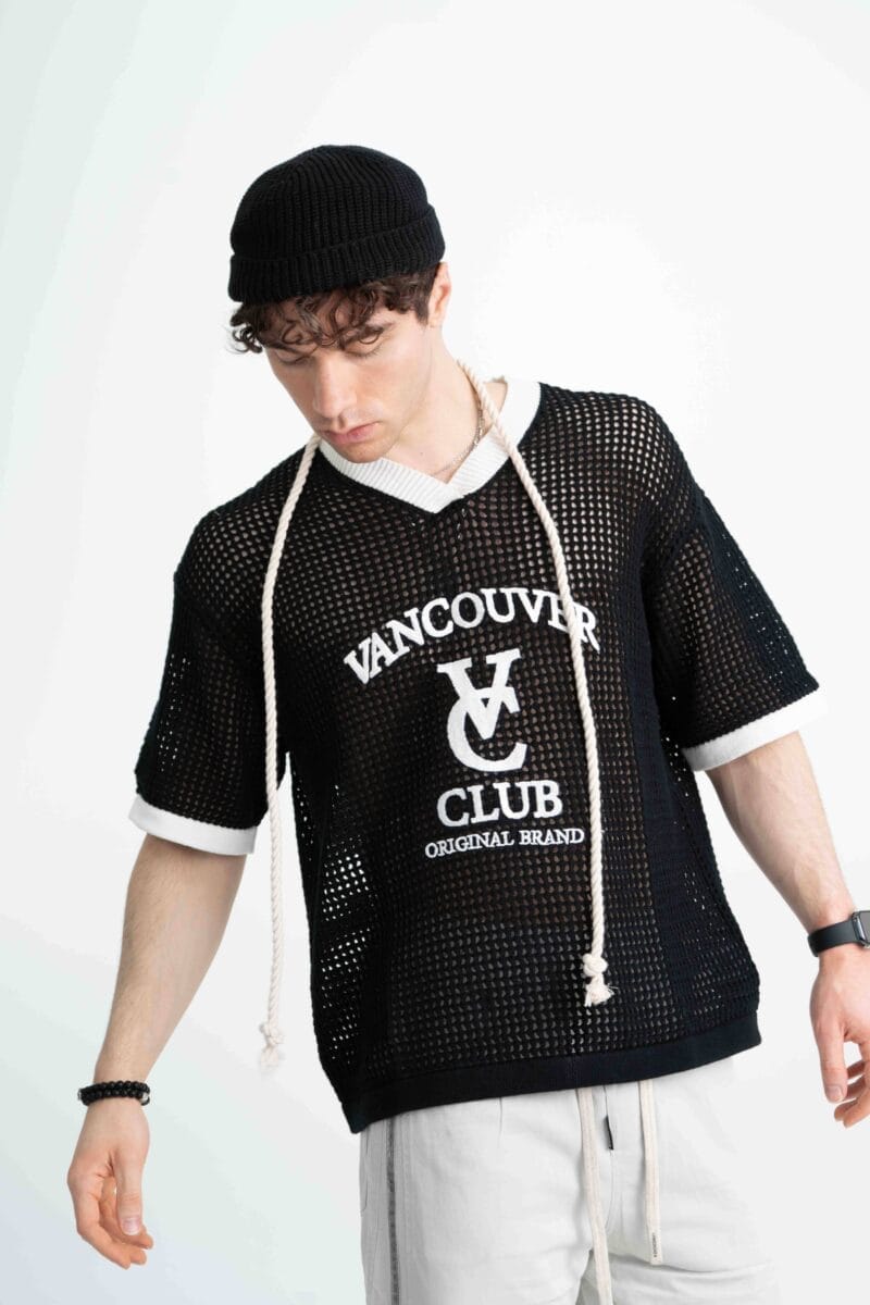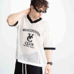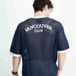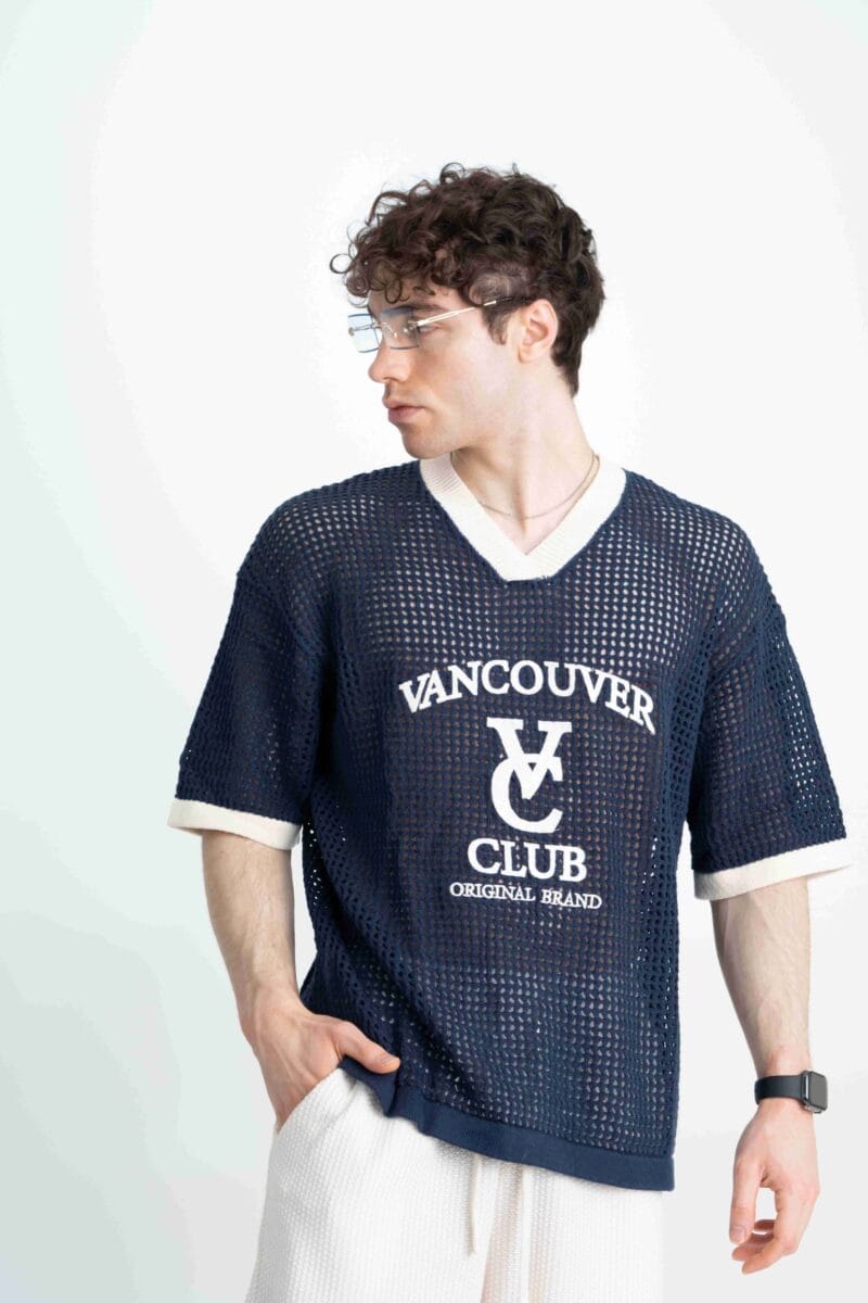 Oversize y fresca, tejida con punto abierto que marca un aire deportivo y urbano. El contraste entre cuello y puños a tono con el bordado frontal le da identidad y fuerza visual. Ideal para destacar sin perder comodidad.