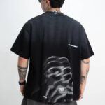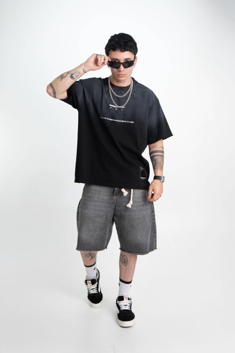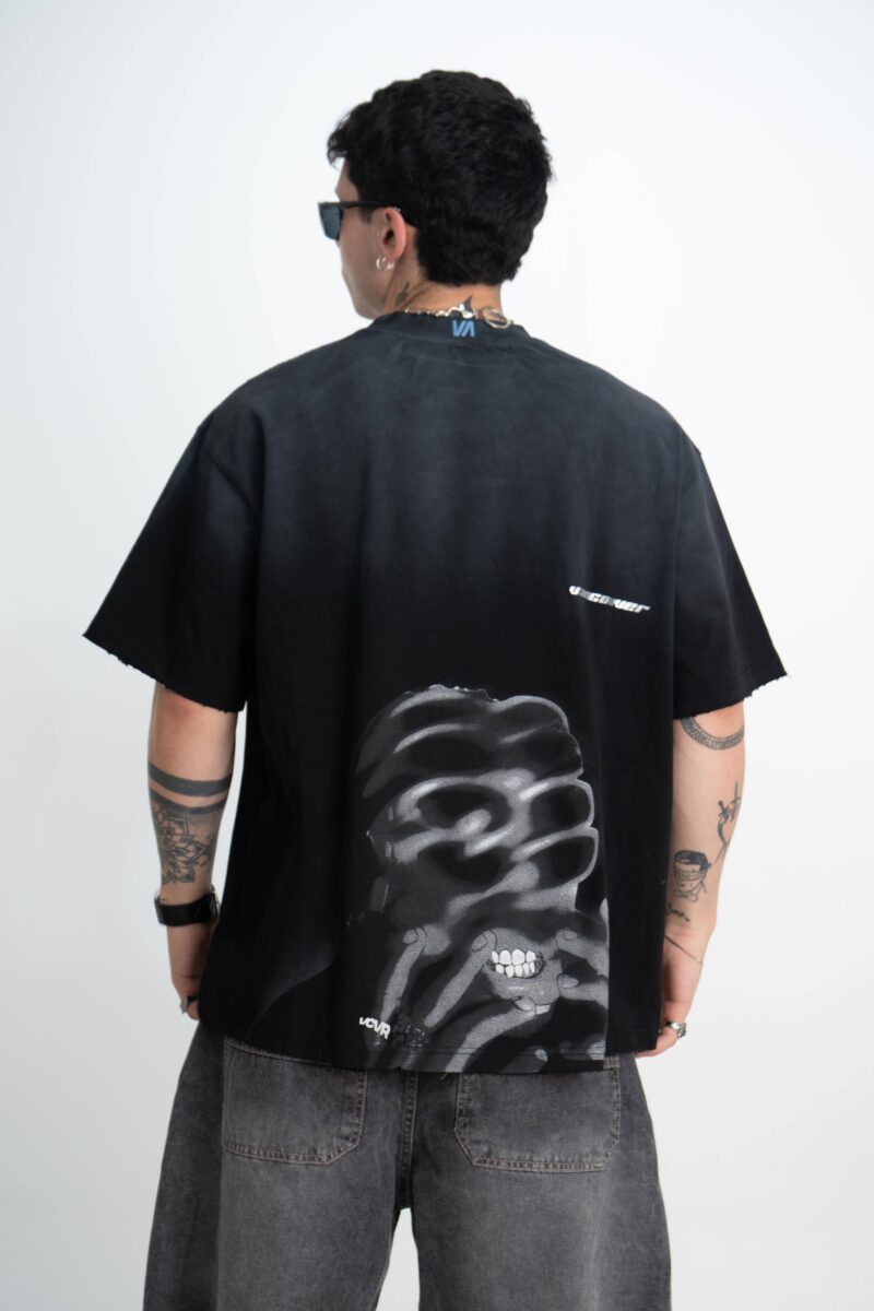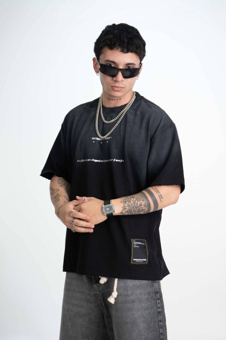 Remera de calce relajado confeccionada en algodón 100%, con estampa frontal tipográfica y gráfica trasera de alto impacto visual. Presenta detalles de branding en pecho y espalda, etiqueta aplicada en delantero inferior y terminaciones crudas en mangas que refuerzan su carácter street. Una pieza que combina diseño conceptual y comodidad, pensada para expresar identidad sin esfuerzo.