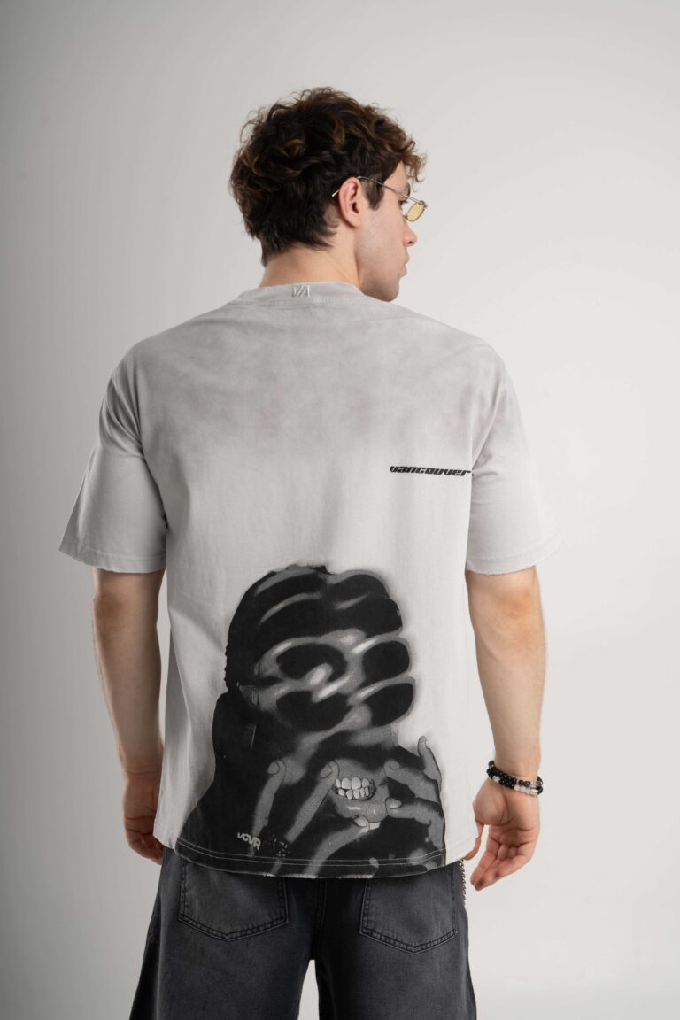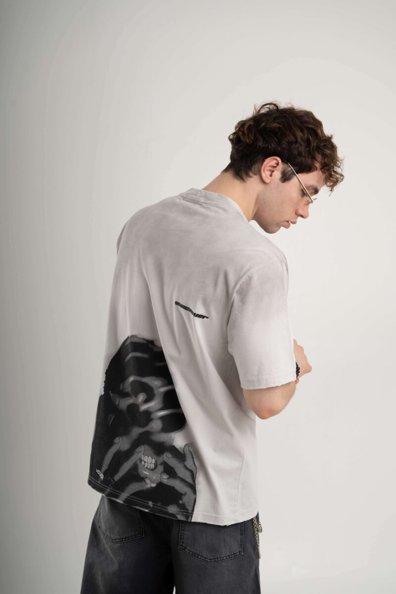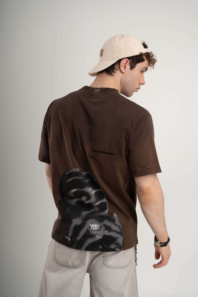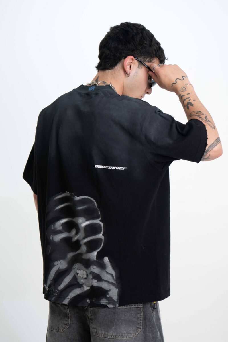 Remera de calce relajado confeccionada en algodón 100%, con estampa frontal tipográfica y gráfica trasera de alto impacto visual. Presenta detalles de branding en pecho y espalda, etiqueta aplicada en delantero inferior y terminaciones crudas en mangas que refuerzan su carácter street. Una pieza que combina diseño conceptual y comodidad, pensada para expresar identidad sin esfuerzo.