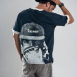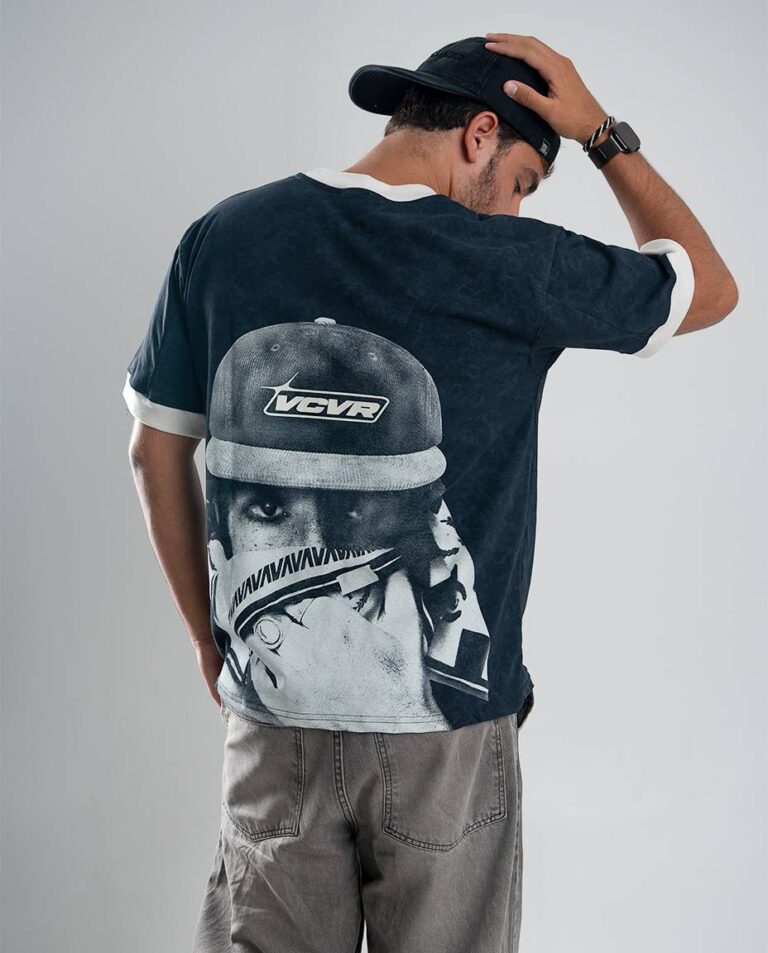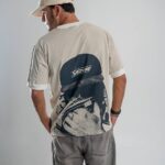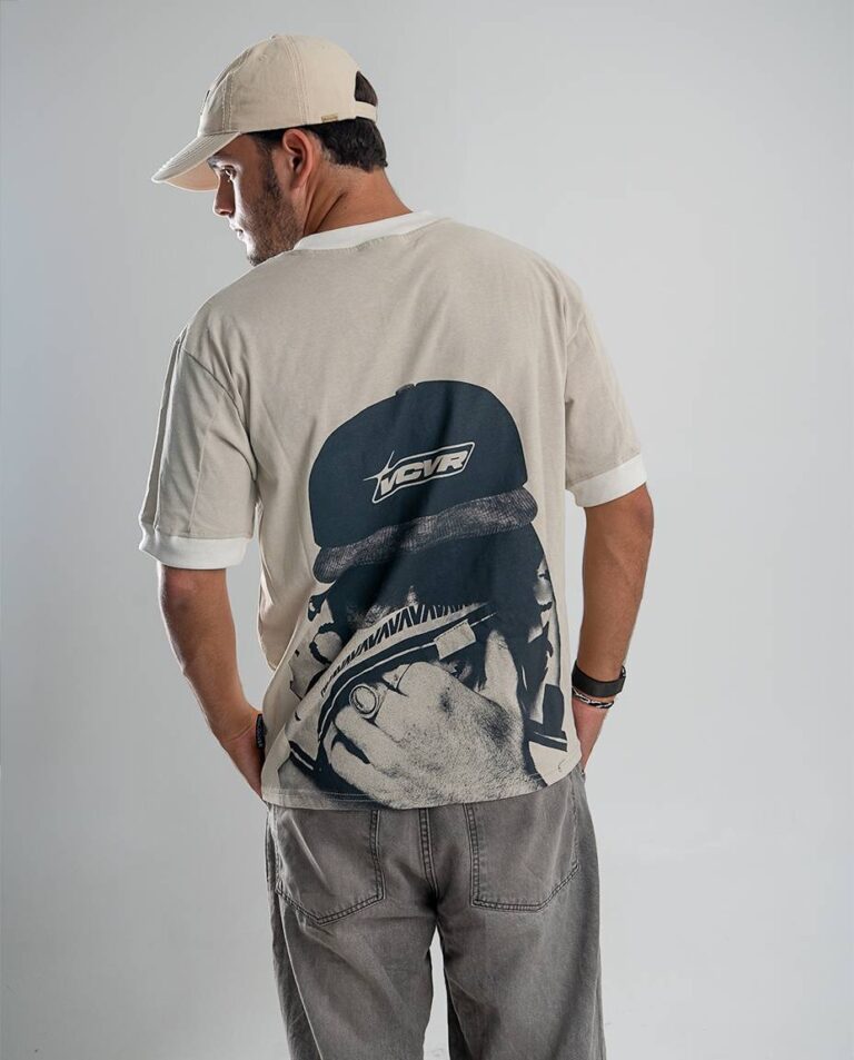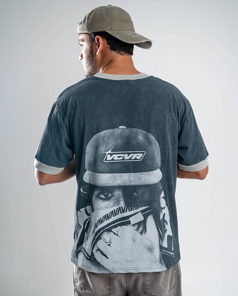 Cuenta con puños anchos a contratono en mangas y escote de cuello redondo cerrado, que aportan estructura y contraste. Presenta estampa estilo logo en el frente y maxi estampa en la espalda, sumando impacto visual, además de una grifa de marca en el lateral izquierdo como detalle distintivo.