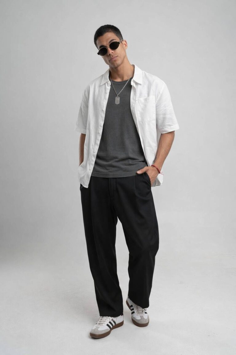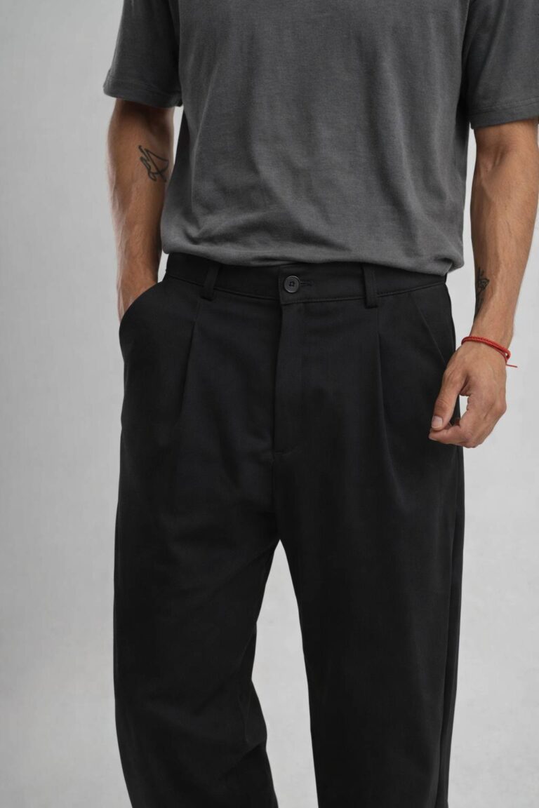 PANTALÓN SOUM: Pantalón sastrero de corte ancho con pinzas que aportan estructura y caída elegante.