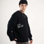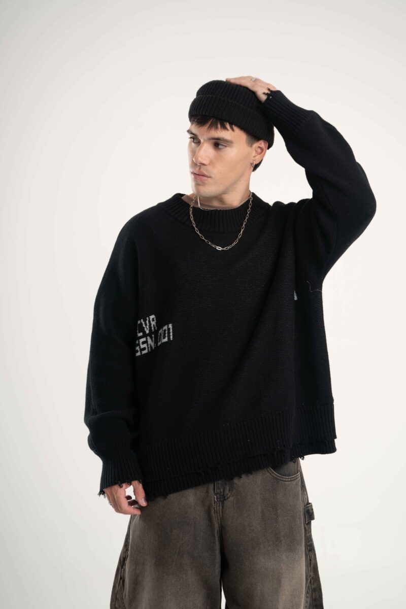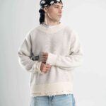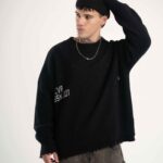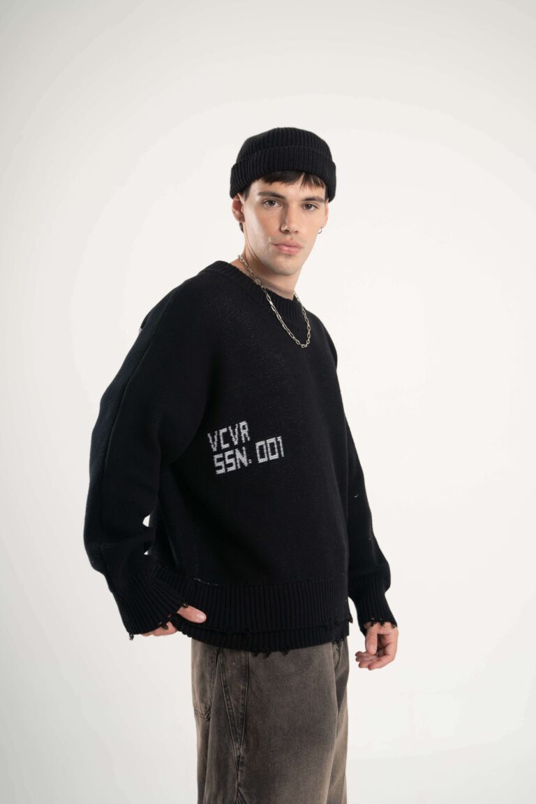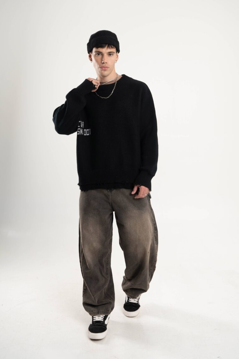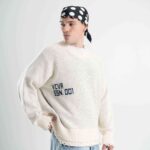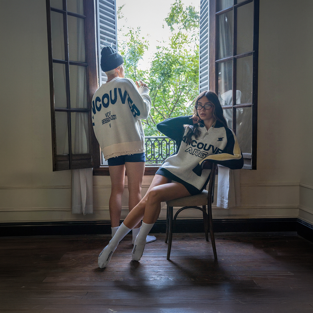 Tejido pesado oversize con cuello amplio y detalles de microroturas que le dan un look bien jugado. Los logos a contratono recorren frente, espalda y mangas, sumando presencia sin esfuerzo.