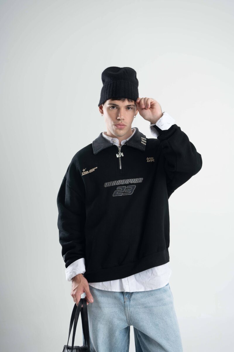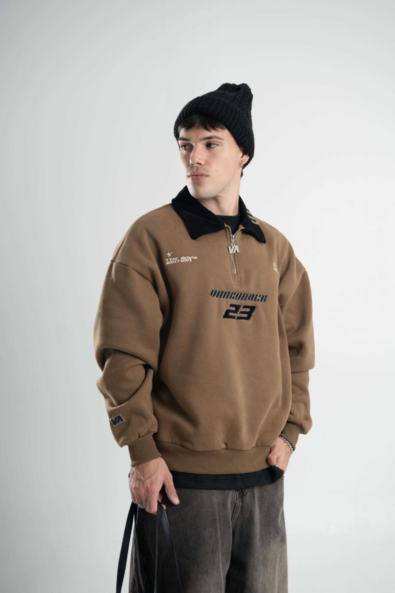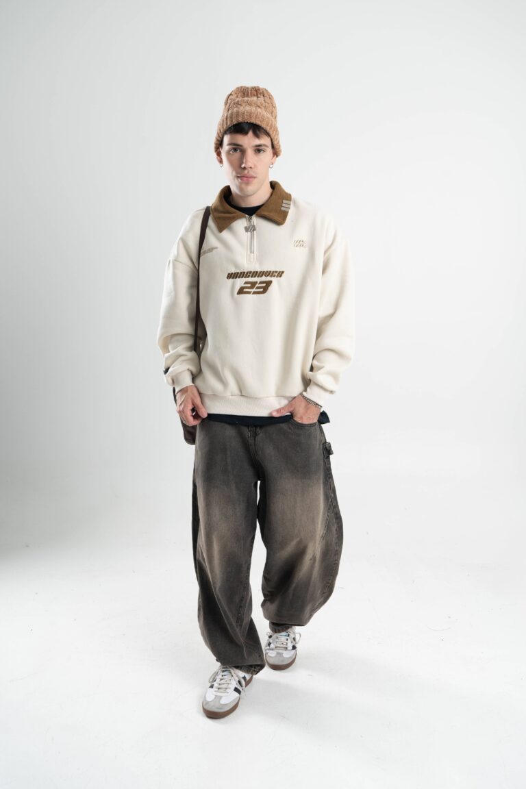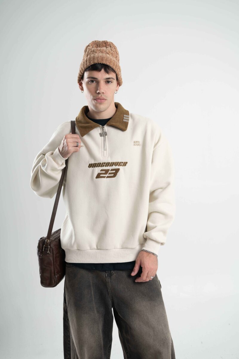 BUZO ZIP: Buzo de friza con calce boxy y cuello polo.