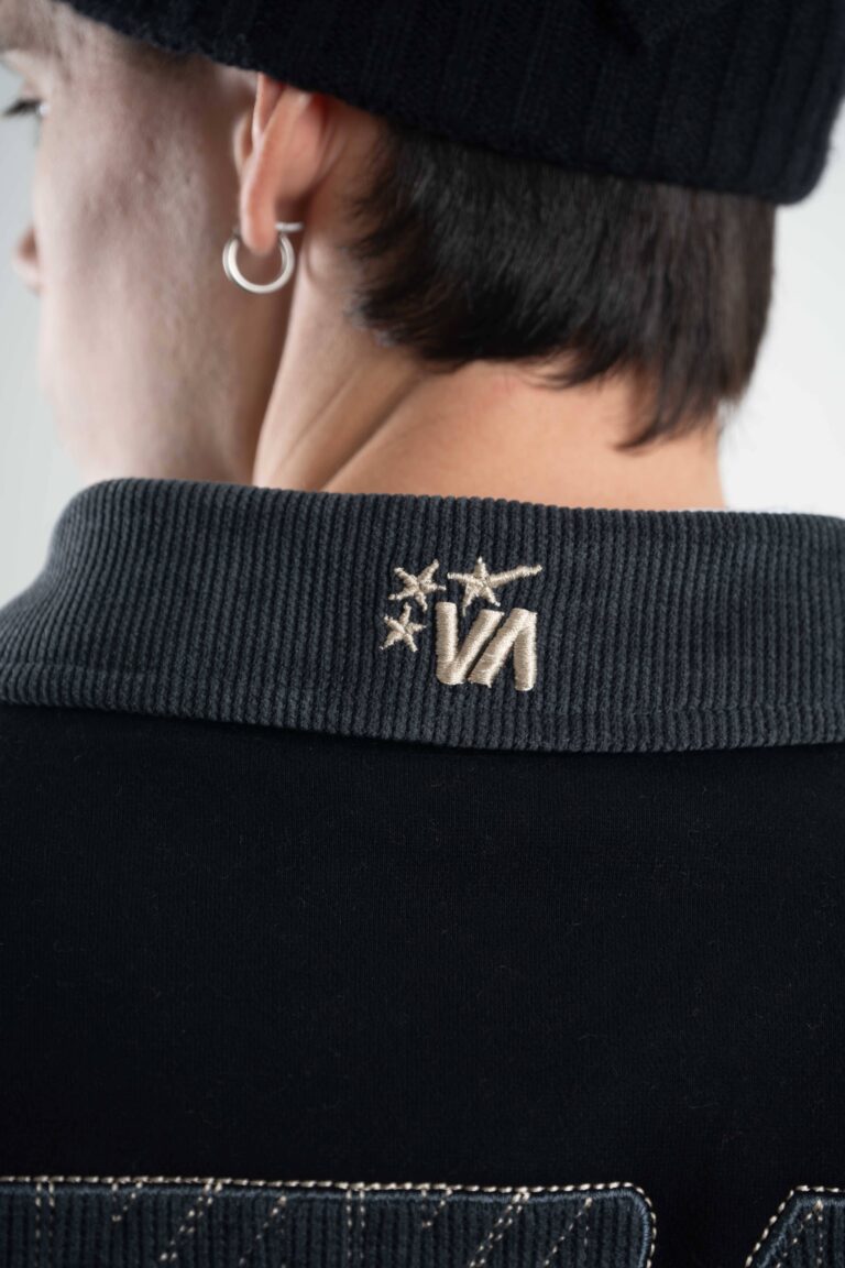 Cuenta con aplique de corderoy a contratono en frente y espalda con rapport bordado, cierre metálico con tiracierre personalizado y bordados en el delantero. Suma detalle de marca en el cuello que completa la identidad.